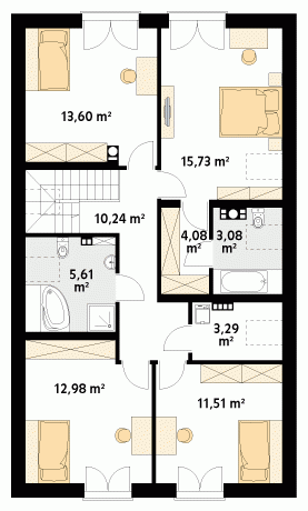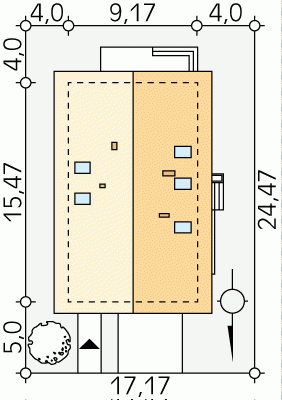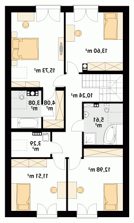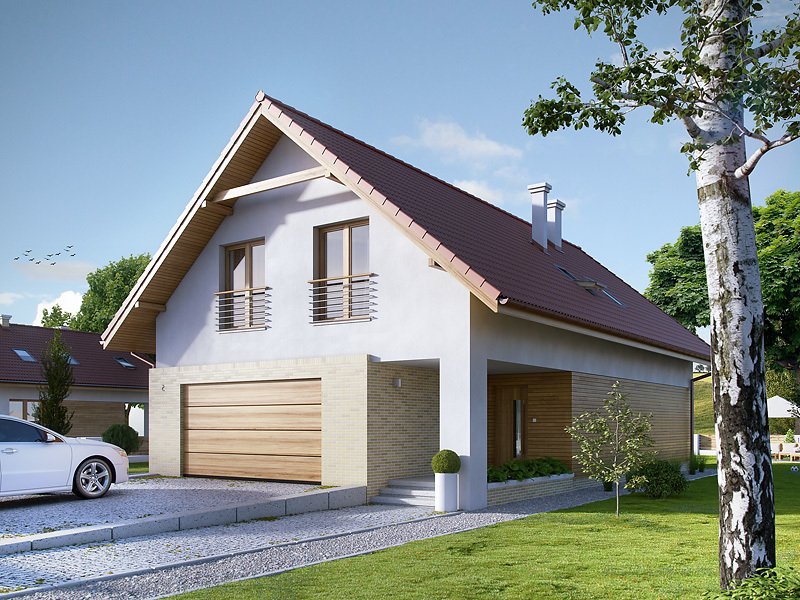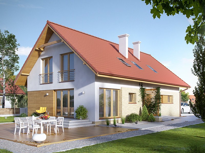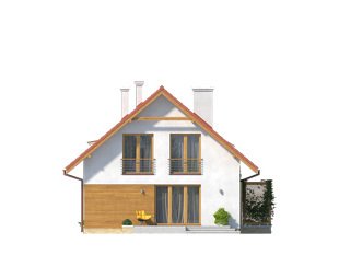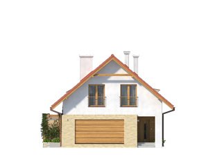 Parterowy dom z użytkowym poddaszem przeznaczony dla 4-5-osobowej rodziny. Na parterze budynku zaprojektowano kuchnię ze spiżarnią, salon, jadalnię, pomieszczenie gospodarcze, wc, kotłownię na każdy rodzaj paliwa oraz dwustanowiskowy garaż. Na poddaszu przewidziano 4 sypialnie, w tym jedną z łazienką i garderobą, ogólnodostępną łazienkę oraz pralnię. W budynku tym prosta, klasyczna bryła w połączeniu z nowoczesnymi elewacjami tworzy przyjemny klimat budynku.