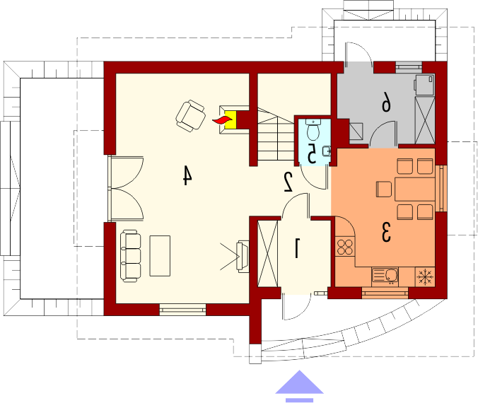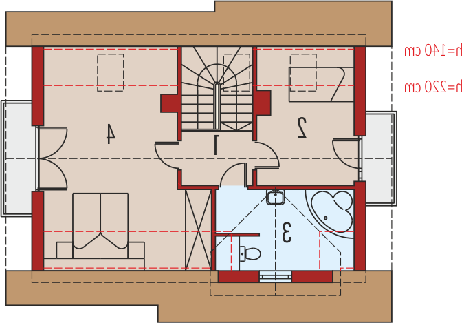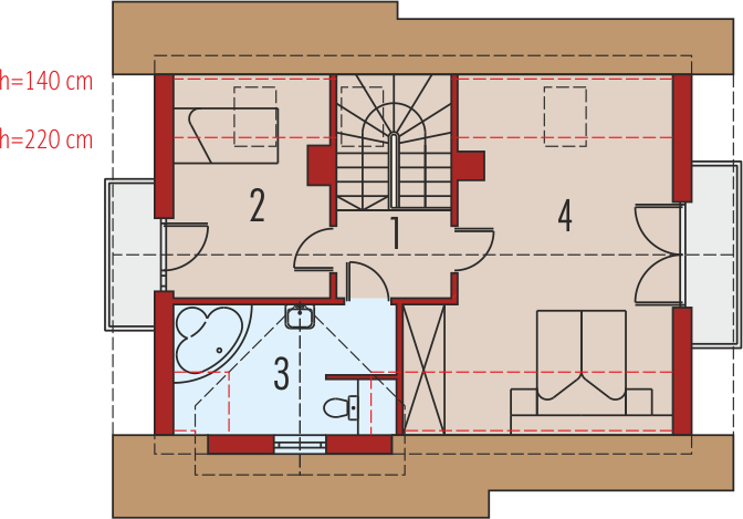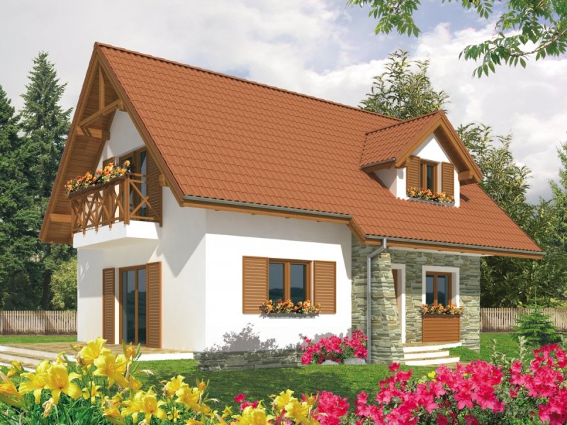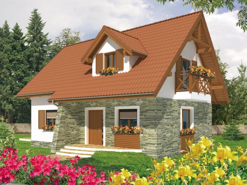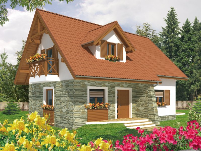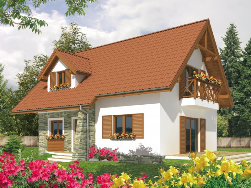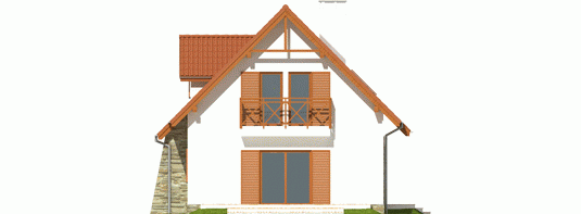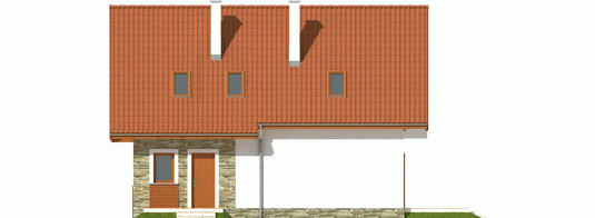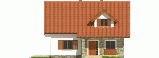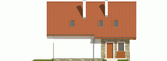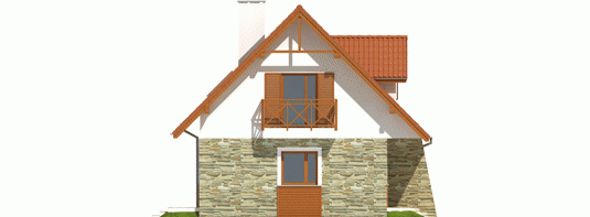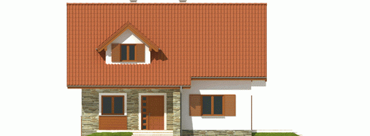 Dom parterowy z użytkowym poddaszem, niepodpiwniczony, przeznaczony dla 3-4-osobowej rodziny. Dom charakteryzuje się przejrzystym układem funkcjonalnym. Na parterze znajduje się część dzienna: salon z kominkiem oraz kuchnia z dużym pomieszczeniem gospodarczym. Na piętrze natomiast znajduje się część nocna, która w zależności od aranżacji może składać się z dwóch bądź trzech sypialni. Do wykończenia bryły tego domu wykorzystano naturalne materiały, dzięki którym stał się ciekawy, a zarazem ciepły i przytulny.