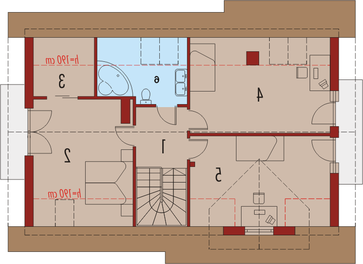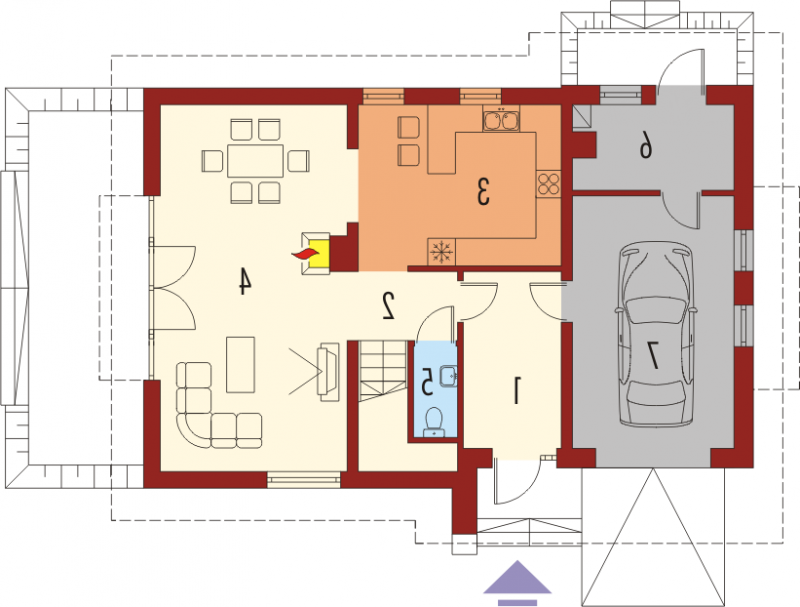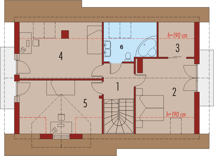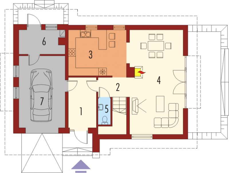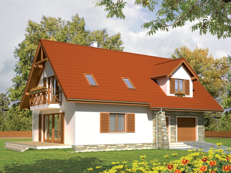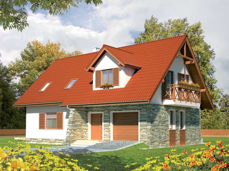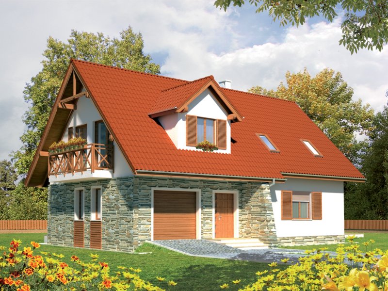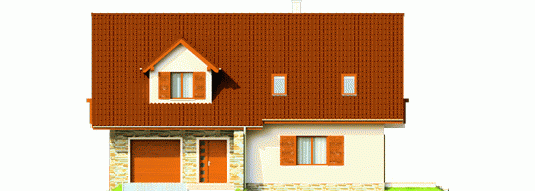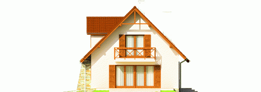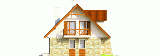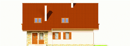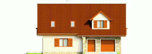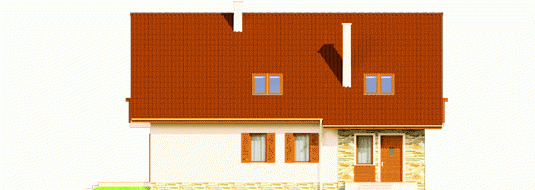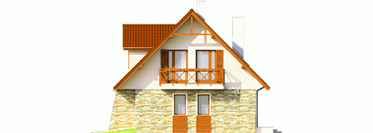 Dom parterowy z użytkowym poddaszem, niepodpiwniczony, z wbudowanym garażem jednostanowiskowym, przeznaczony dla 3-4-osobowej rodziny. Dom charakteryzuje się przejrzystym układem funkcjonalnym. Strefa dzienna parteru to duży pokój dzienny z centralnie usytuowanym kominkiem, funkcjonalna kuchnia, toaleta oraz wiatrołap, z którego bezpośrednio możemy dostać się do garażu. Pomieszczenie gospodarcze posiada osobne wyjście w części ogrodowej. Na poddaszu znajdują się: sypialnia z własną garderobą, dwa pokoje i wygodna łazienka. Tradycyjne materiały użyte do wykończenia budynku nadały budynkowi ciepły, rodzinny charakter. Istnieje mniejsza wersja tego projektu „Anulka” o powierzchni użytkowej około 98 m2.