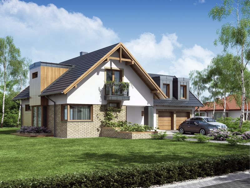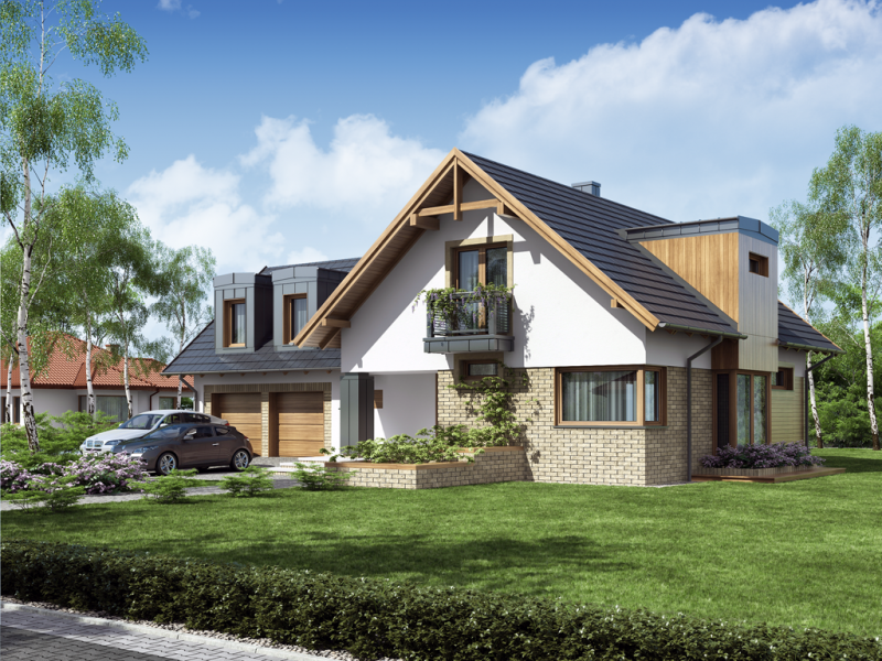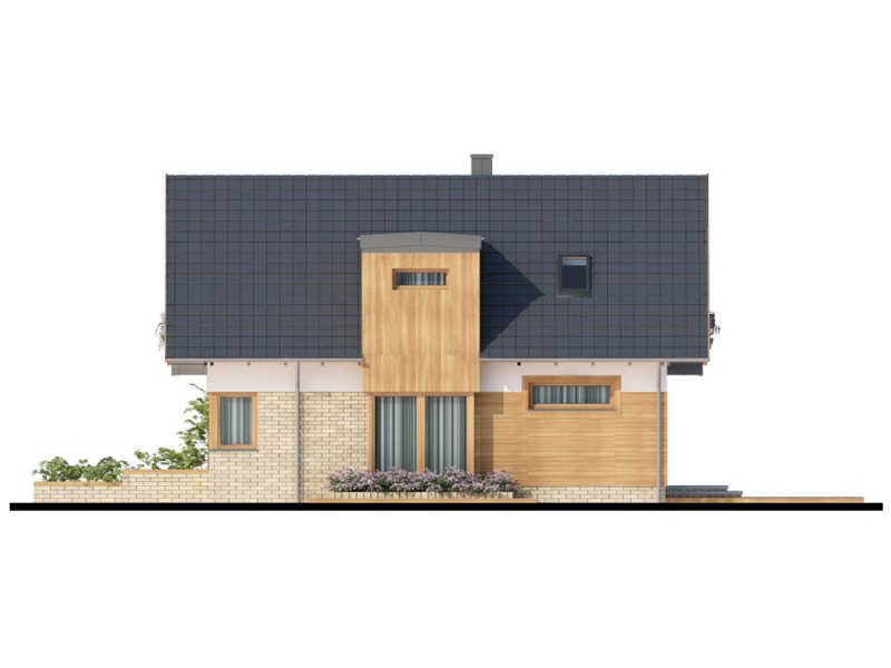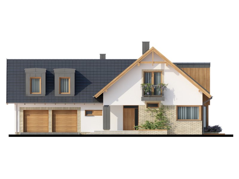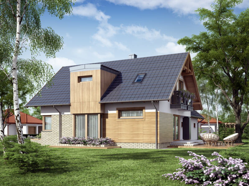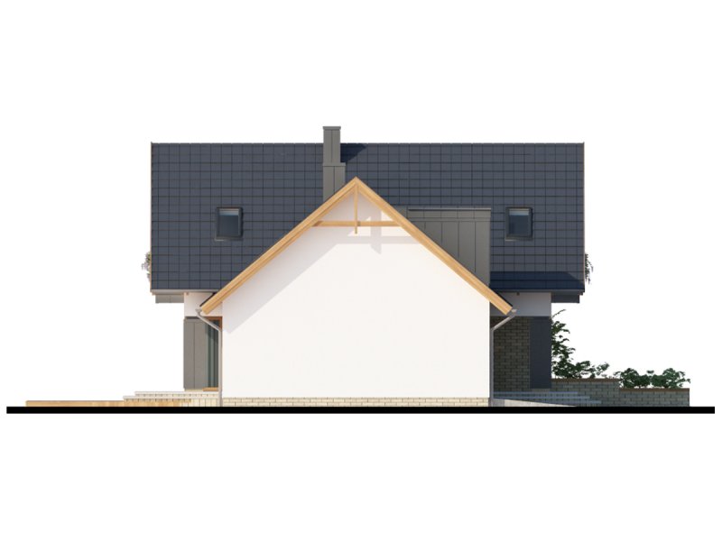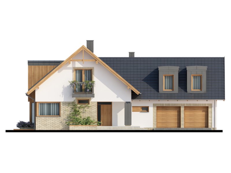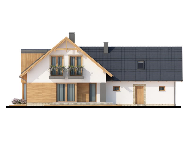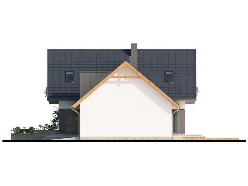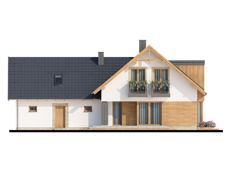 Archimedes to dom parterowy z poddaszem użytkowym, zaprojektowany dla 4-5-osobowej rodziny. Posiada prosty, klarowny rzut, jednocześnie zapewniający pełną funkcjonalność budynku. Wyróżnić można trzy strefy użytkowe: dzienną i gospodarczą na parterze oraz nocną na poddaszu. Wchodząc do domu przez wyposażony w praktyczną garderobę wiatrołap, ukazuje się obszerny salon z kominkiem. Posiada on wyodrębnioną częścią jadalnianą usytuowaną przy słonecznym wykuszu. Otwartą na salon kuchnię można przekształcić w zamkniętą stawiając lekką ściankę działową. Dopełnieniem dla kuchni jest użyteczna spiżarnia oświetlona światłem dziennym. Bezpośrednio przy wejściu znajduje się także pokój, który dzięki swej lokalizacji może pełnić rolę gabinetu, pokoju gościnnego lub kolejnej sypialni. Na parterze oprócz strefy dziennej, na którą składają się m.in. wyżej wymienione pomieszczenia, znajduje się część gospodarcza. W jej skład wchodzi pomieszczenie gospodarcze/kotłownia oraz jednostanowiskowy garaż ze specjalnie wydzieloną, dostępną od strony ogrodu częścią np. na składowanie narzędzi ogrodniczych. Poddasze stanowi w całości strefa nocna. Każda z trzech sypialni posiada indywidualny balkon, a jedna z nich dodatkowo własną garderobę. Znajduje się tam również doświetlony naturalnym światłem obszerny salon łazienkowy. Istnieje także możliwość adaptacji strychu na cele mieszkalne i uzyskania tym samym dodatkowej sypialni czy pokoju hobby.