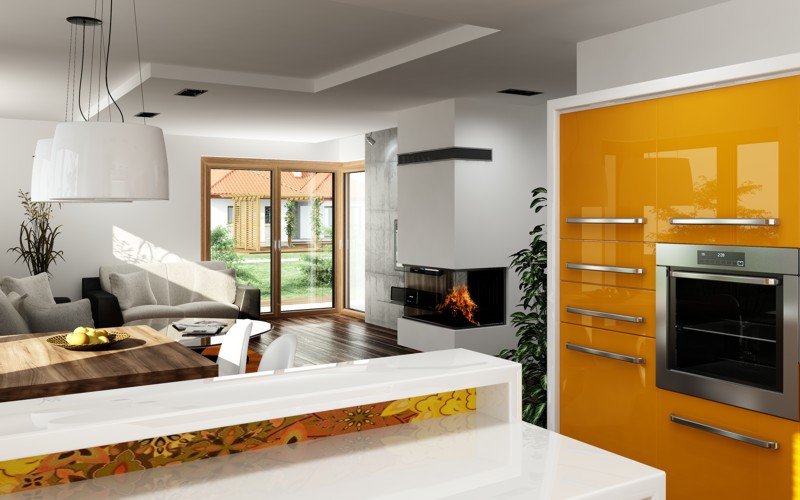 Projekt w standardzie posiada dodatkowo projekt ogrzewania kominkiem z płaszczem wodnym.