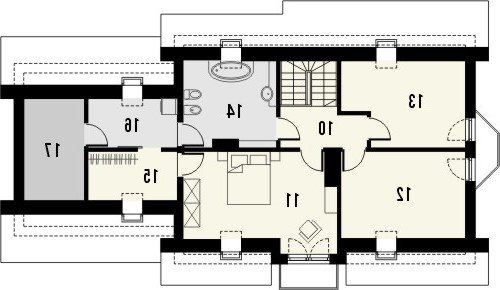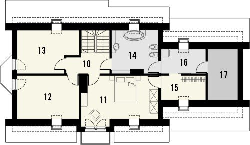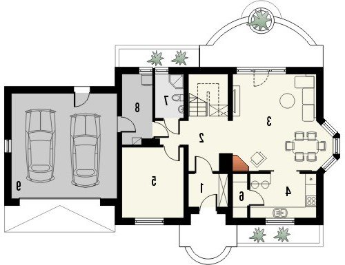 Budynek piętrowy z garażem dwustanowiskowym. Na parterze salon z jadalnią, kuchnia ze spiżarnią, dodatkowy pokój, łazienka i pomieszczenie gospodarcze. Na poddaszu zaprojektowano łazienkę i 3 sypialnie, z których jedna ma osobną garderobę. Dokumentacja dostępna również w odbiciu lustrzanym.