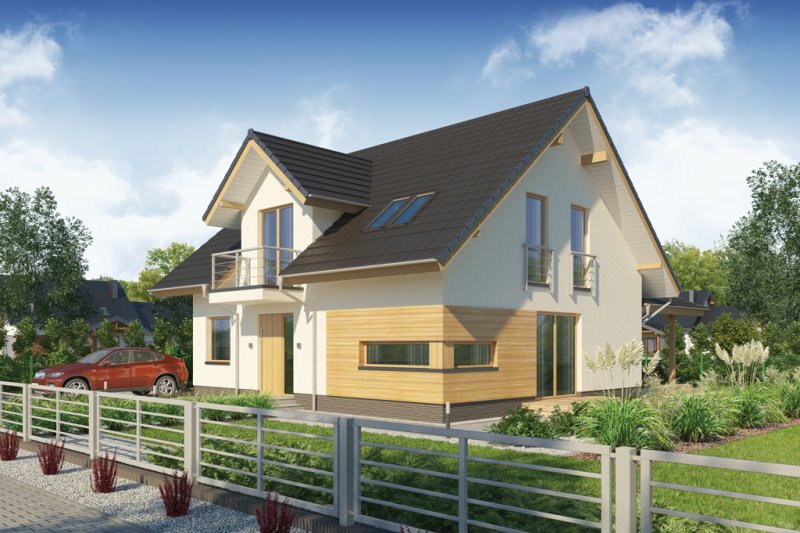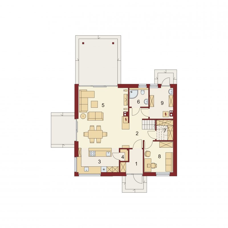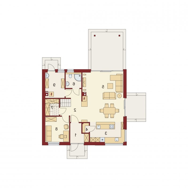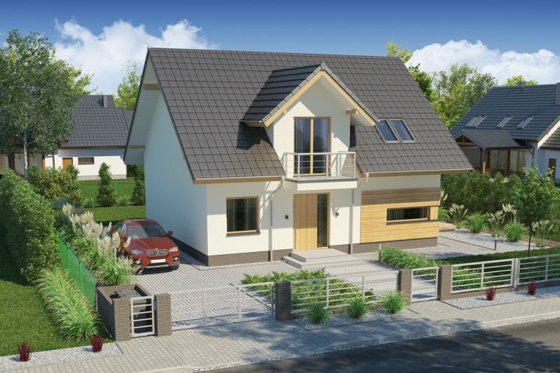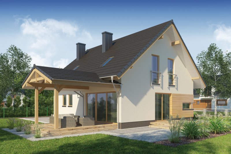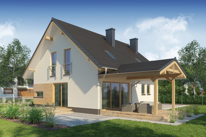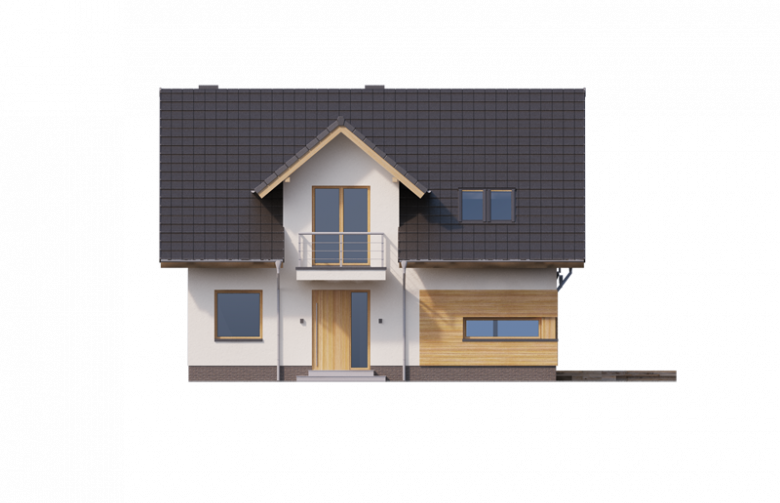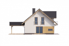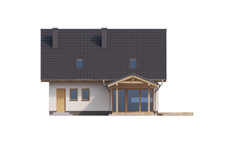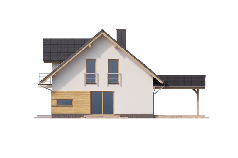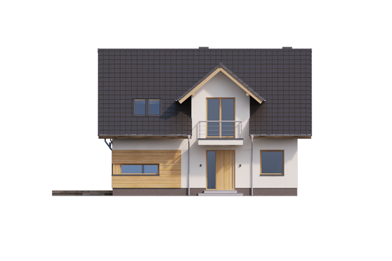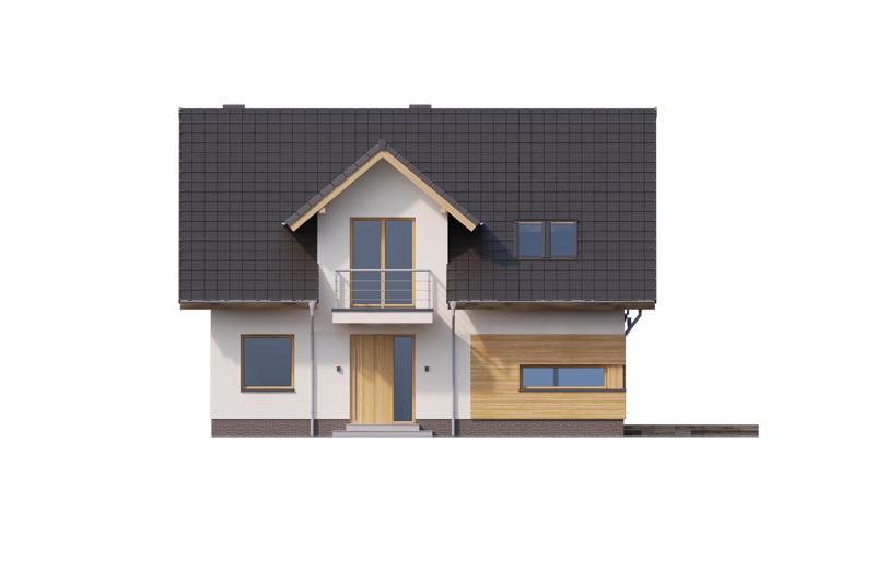 AUGUST 3 PS to dom parterowy z poddaszem użytkowym, zaprojektowany dla 4-5-osobowej rodziny. Na parterze znajduje się: przestronny salon z jadalnią i dwoma wyjściami na tarasy ( w tym jeden zadaszony), łatwa do wydzielenia w ramach adaptacji kuchnia ze spiżarnią oraz gabinet, który wraz ze położoną niedaleko łazienką doskonale sprawdzi się także jako pokój gościnny czy dodatkowa sypialnia. Dodatkowo znajdziemy tu kotłownię i zlokalizowane pod schodami pomieszczenie gospodarcze.