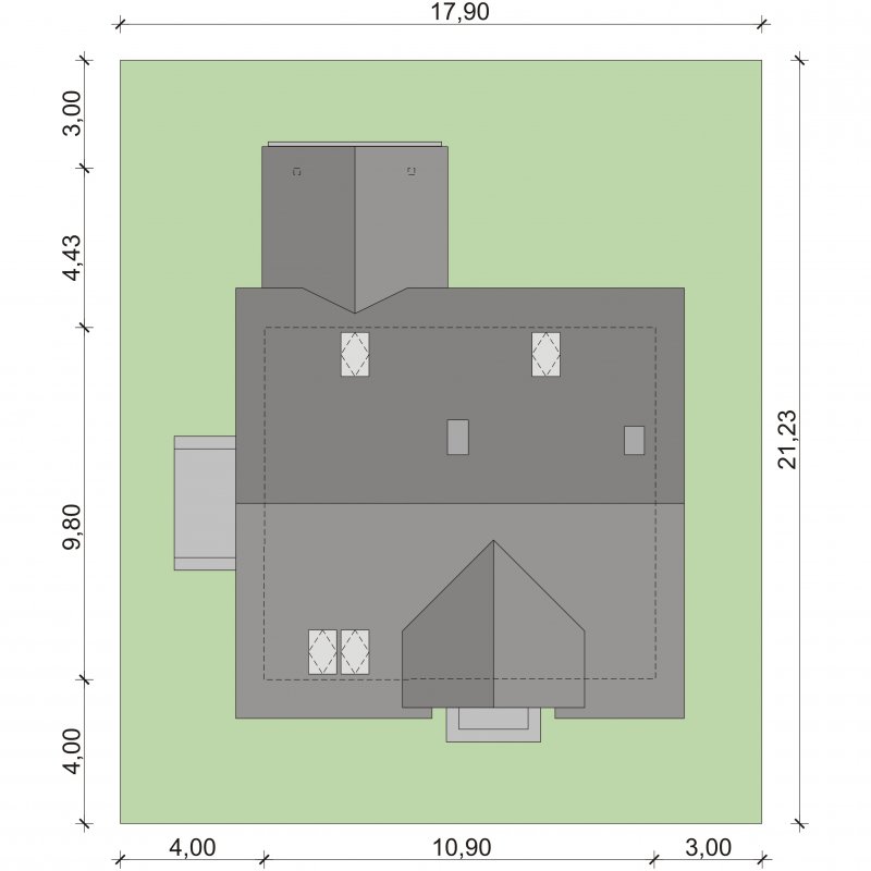 - Min. wymiary działki 17.90x20.69 m