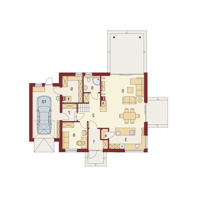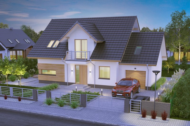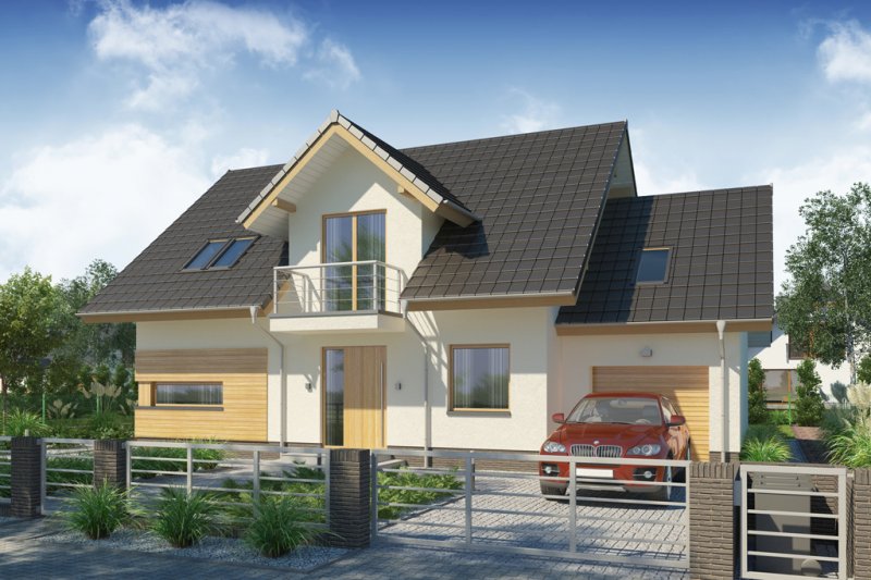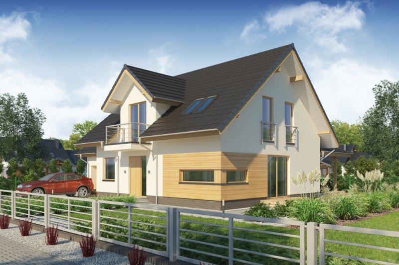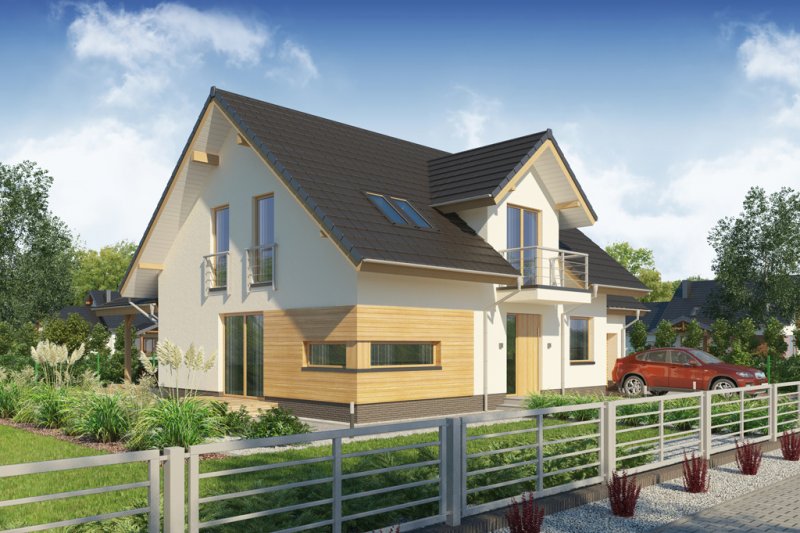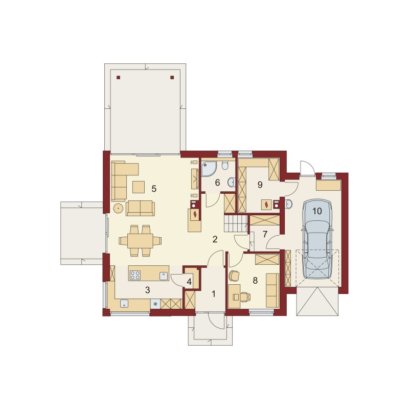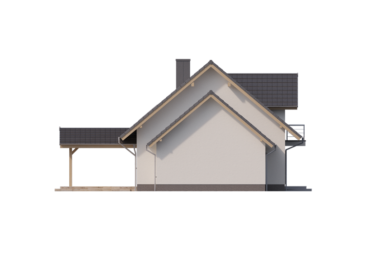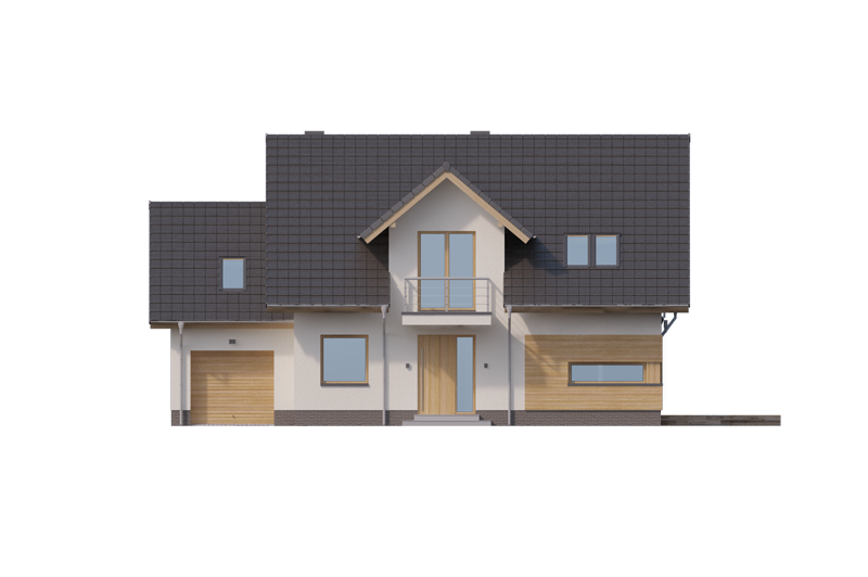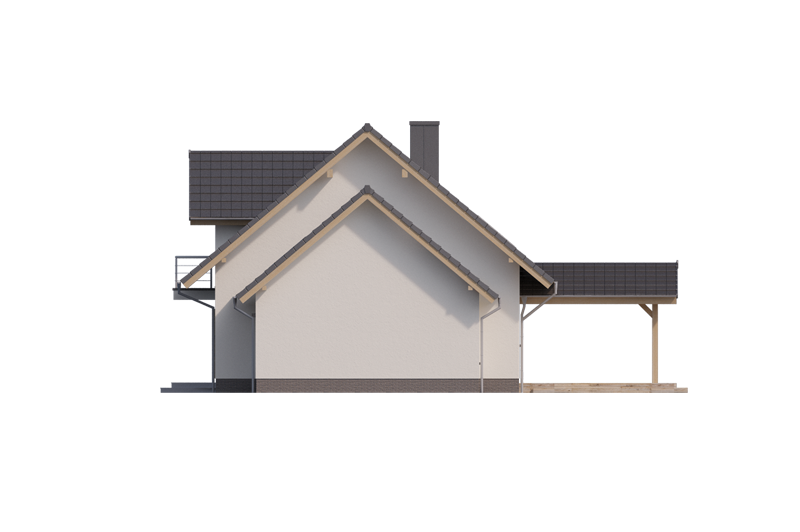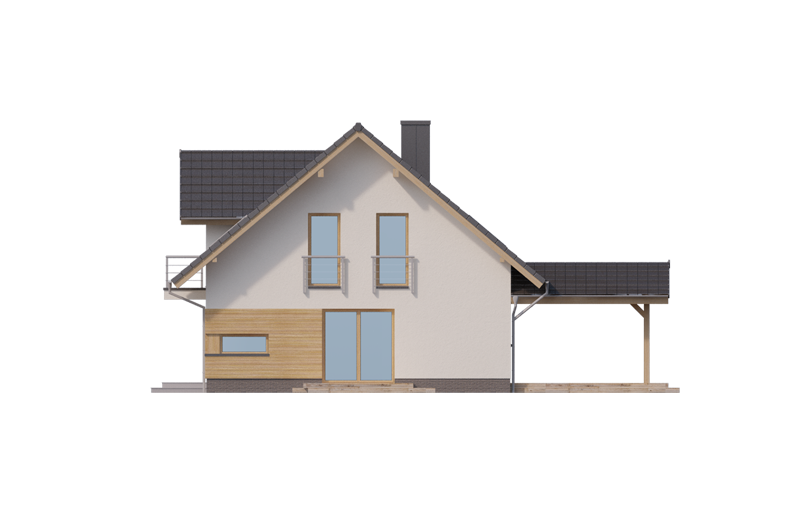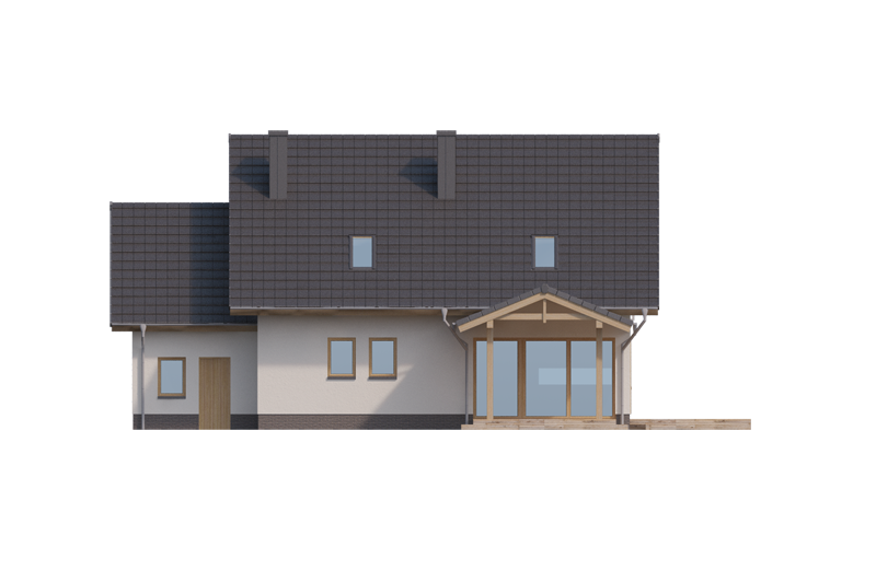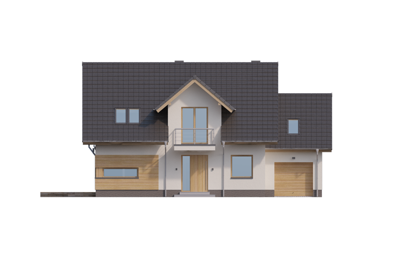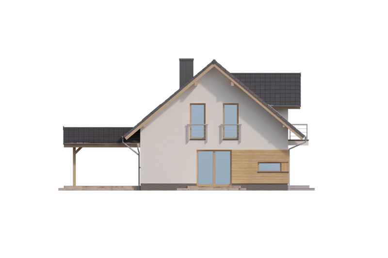 AUGUST PS to dom parterowy z poddaszem użytkowym, zaprojektowany dla 4-5-osobowej rodziny. Na parterze znajduje się: przestronny salon z jadalnią i dwoma wyjściami na tarasy ( w tym jeden zadaszony), łatwa do wydzielenia w ramach adaptacji kuchnia ze spiżarnią oraz gabinet, który wraz ze położoną niedaleko łazienką doskonale sprawdzi się także jako pokój gościnny czy dodatkowa sypialnia. Dodatkowo znajdziemy tu kotłownię i jednostanowiskowy garaż do którego dojść można przez zlokalizowane pod schodami pomieszczenie gospodarcze.