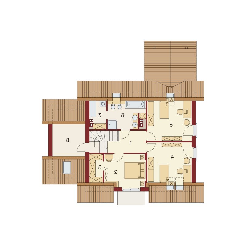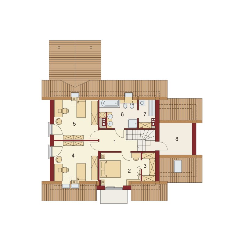Na poddaszu odnajdziemy trzy duże pokoje - w tym jeden z własną garderobą i wyjściem na balkon oraz łazienkę z osobną pralnią i strych, który można zaadaptować na kolejne pomieszczenie np.pokój hobby.