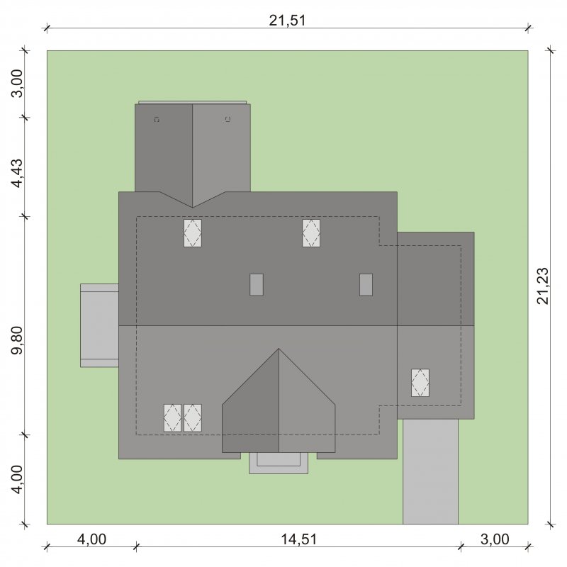 - Min. wymiary działki 21.51x21.23 m