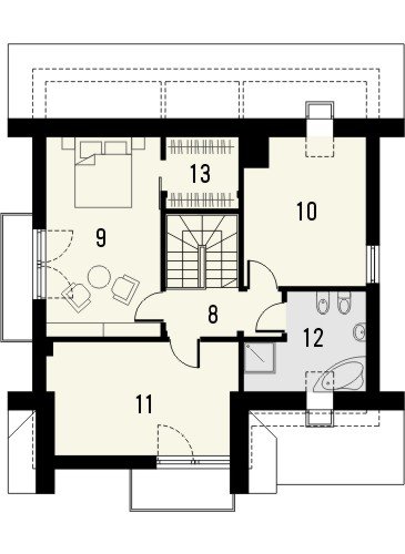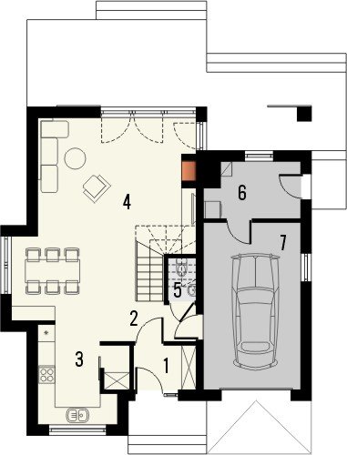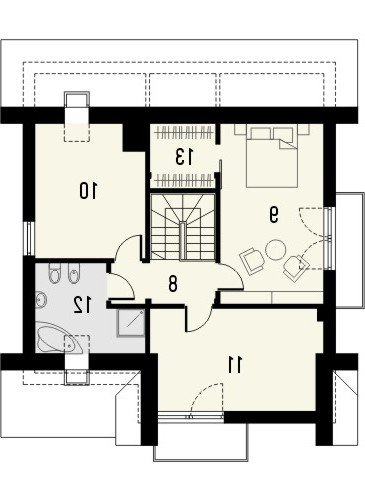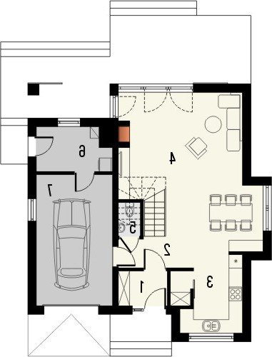 - Dom jednorodzinny BELLA 6 to niepodpiwniczony piętrowy budynek z garażem. Na parterze zaprojektowano pokój dzienny z dużymi oknami wychodzącymi na ogród, jak również jadalnię i kuchnię ze spiżarką oraz pomieszczenie gospodarcze i wc. Na poddaszu zaprojektowano trzy pokoje sypialne oraz łazienkę. Dokumentacja dostępna jest również w odbiciu lustrzanym.