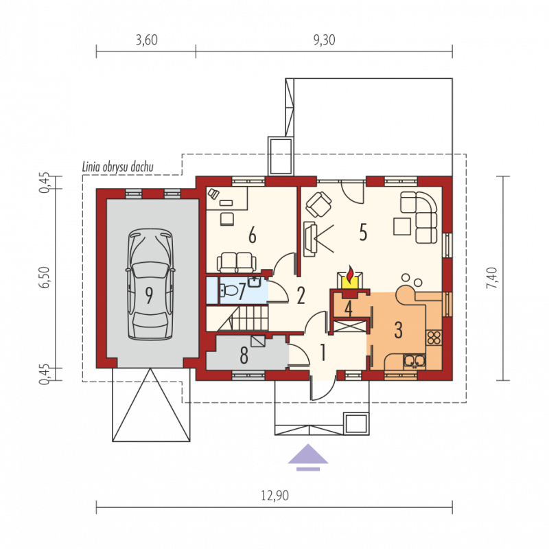 - Kąt nachylenia dachu 45.00°
