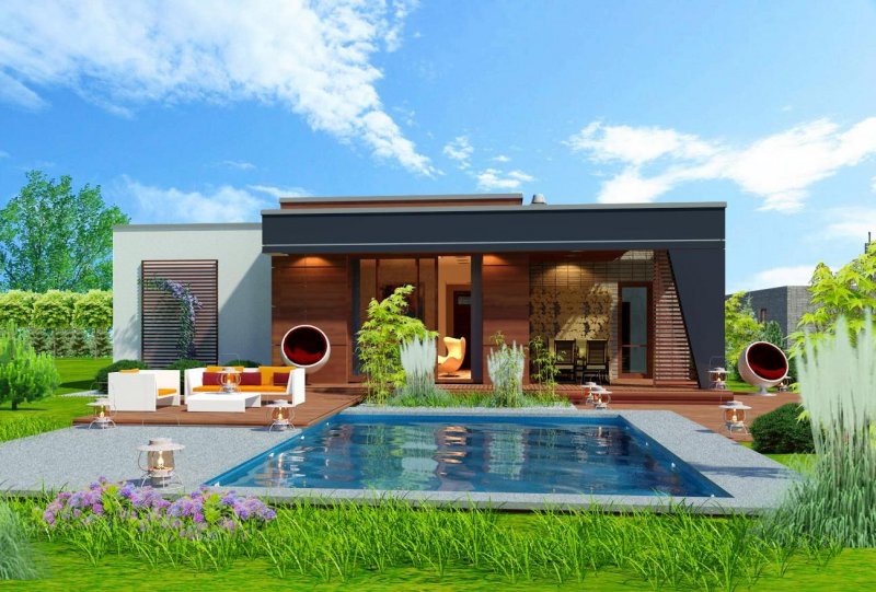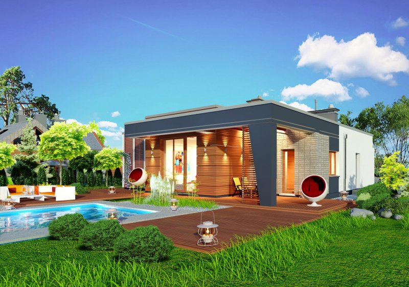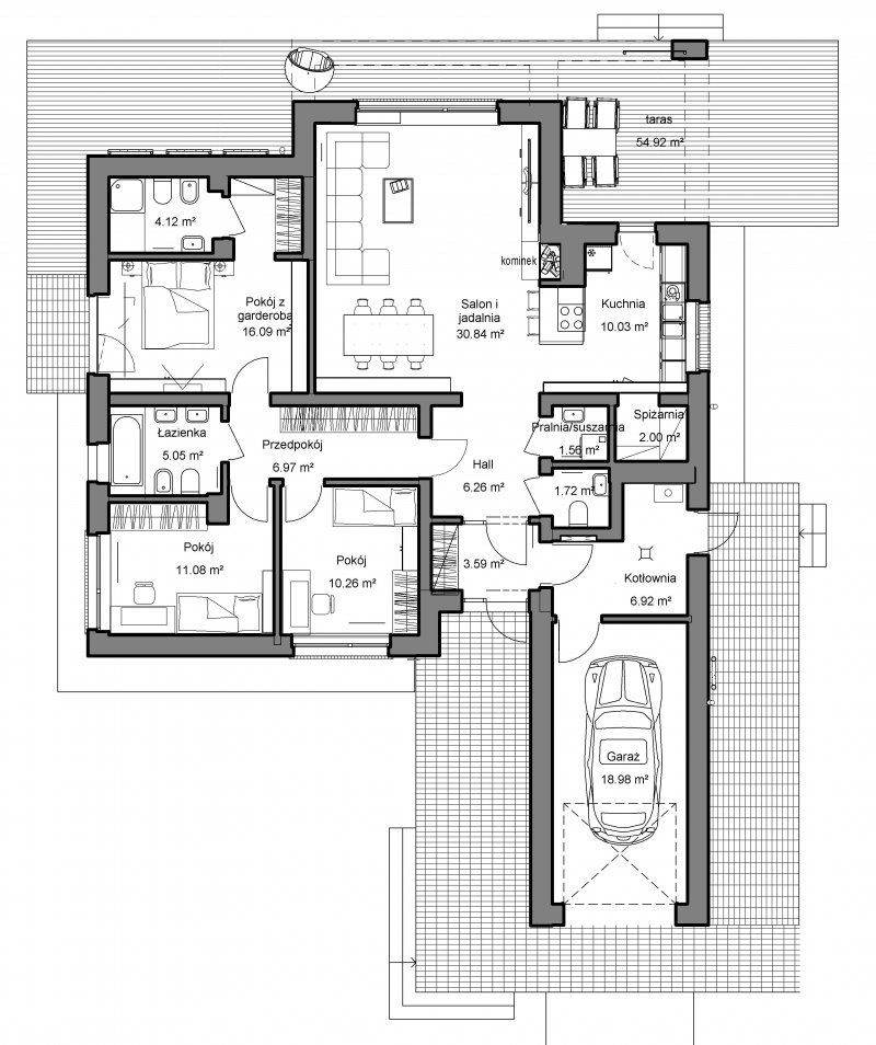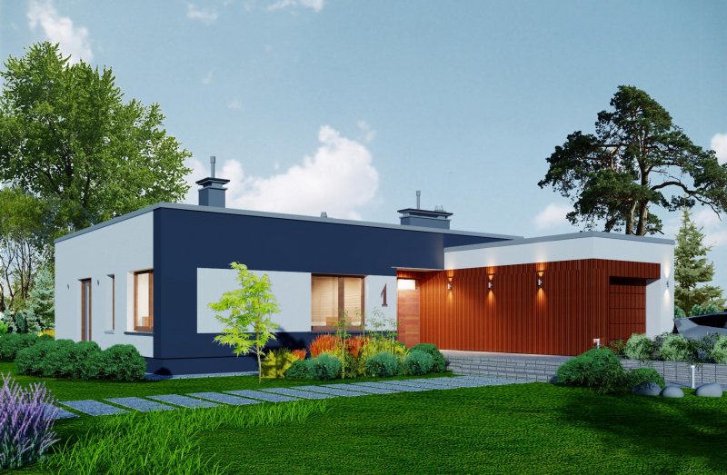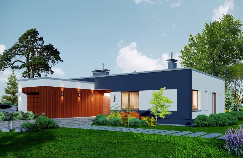 To rozłożysty parterowy, bardzo komfortowy dom o niezbyt wielkim metrażu.