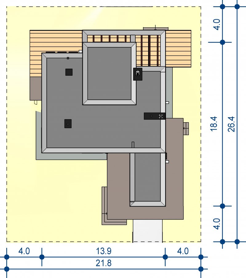 Elegancki, wysmakowany, o dobrze dobranych proporcjach bryły i wyważonym detalu. Ciekawe nowoczesne elewacje zapewniają atrakcyjny wygląd.