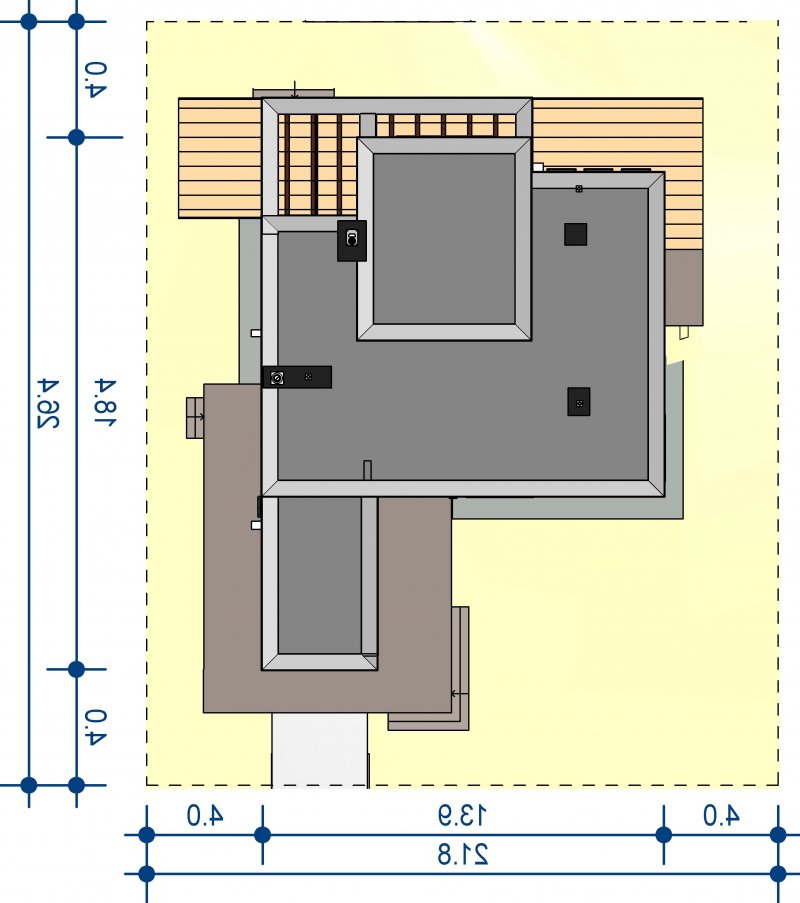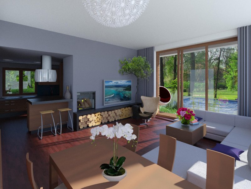 Bardzo przemyślane rozplanowanie pomieszczeń zapewnia elastyczność w dostosowaniu ich do swoich potrzeb. Wyraźne wydzielenie stref funkcjonalnych domu pozwala na komfortowe i niezależne korzystanie z nich, a także zapewnia możliwość zamknięcia drzwiami części prywatnej. Także salon i kuchnia mogą zostać wydzielone ścianami z osobnymi wejściami do obu pomieszczeń.