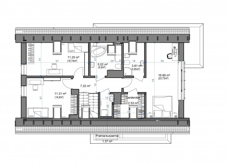Elegancki, wysmakowany, o dobrze dobranych proporcjach bryły i wyważonym detalu. Ciekawe nowoczesne elewacje zapewniają atrakcyjny wygląd.