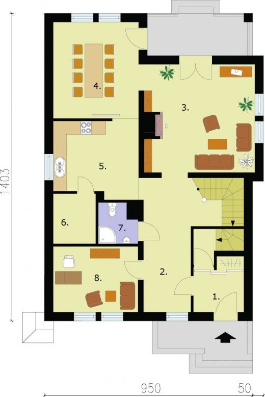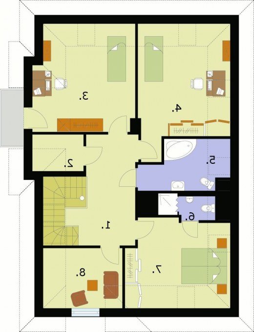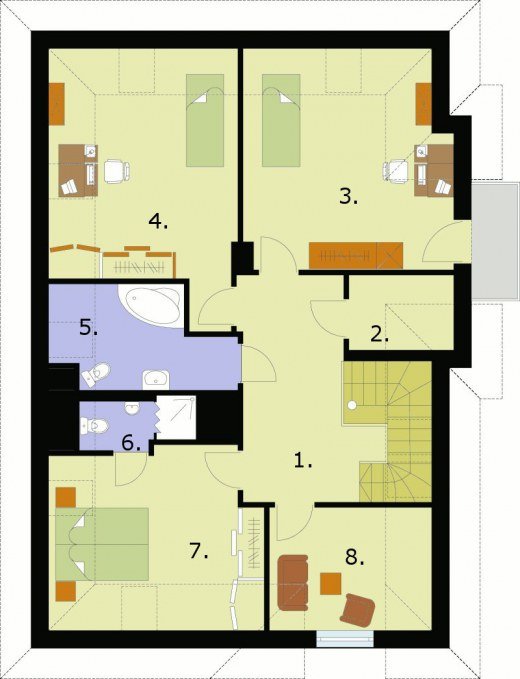 "Don Benito" Okazały, imponujący dom, zaprojektowany z finezją i fantazją. Don Benito jest elegancki w każdym calu i z każdej strony wygląda bardzo atrakcyjnie. Niezwykle zachęcająco prezentuje się od frontu: duże okna, ładne murki okalające ganeczek, urocze półokrągłe okno nad wejściem, a do tego wygięta w łagodny łuk dyskretna miniprzypora zdobiąca naroże. Dobrane ze smakiem kolory, materiały i elementy wykończeniowe tworzą efektowną kompozycję wizualną. Szyku dodają elementy wykonane z klinkierowej cegły barwy starego wina, a także drewniane wykończenia dachu, balkonu oraz tarasu-werandy na tyłach. To wszystko pozwala się domyślać, że wnętrze jest równie interesujące. I tak jest w rzeczywistości: duży pokój dzienny na parterze, funkcjonalnie zaplanowana kuchnia wzbogacona (co ważne) o spiżarnię, obszerna jadalnia, łazienka i niewielki pokój (świetny na gabinet do pracy lub pokój gościnny) wszystko to obiecuje spokojne i wygodne rodzinne życie. Na poddaszu znalazło się miejsce na dwa przytulne pokoje, sypialnię z własną łazienką i pokój rekreacyjny. Jest także większa łazienka do wspólnego użytków mieszkańców poddasza. Dodatkowym atutem jest fakt, że dom jest podpiwniczony w piwnicach znajduje się kotłownia i dwa pomieszczenia gospodarcze. Projekt składa się z części architektonicznej, konstrukcyjnej, wewnętrznych instalacji wod.-kan, c. o. i elektrycznej. W projekcie załączone są podstawowe zestawienie stali, drewna i stolarki okienno-drzwiowej. Do projektu dołączamy bezpłatną zgodę na wprowadzenie zmian, oświadczenie projektantów o wykonaniu projektu zgodnie z obowiązującymi normami i przepisami oraz kserokopie uprawnień projektantów wraz z aktualnym wpisem do izby. W przypadku zamówienia projektu w technologii lekkiej, drewnianej konstrukcji szkieletowej, powierzchnia użytkowa budynku jest o około 7% większa.