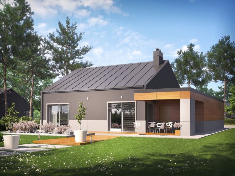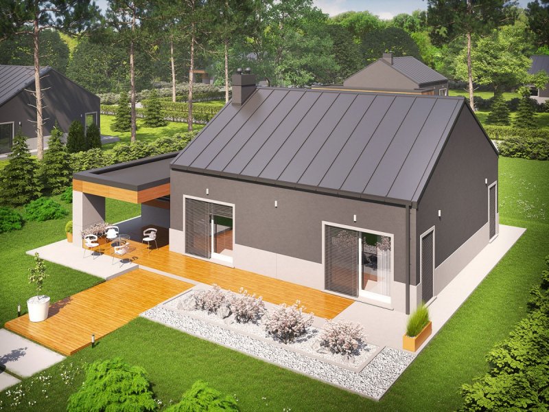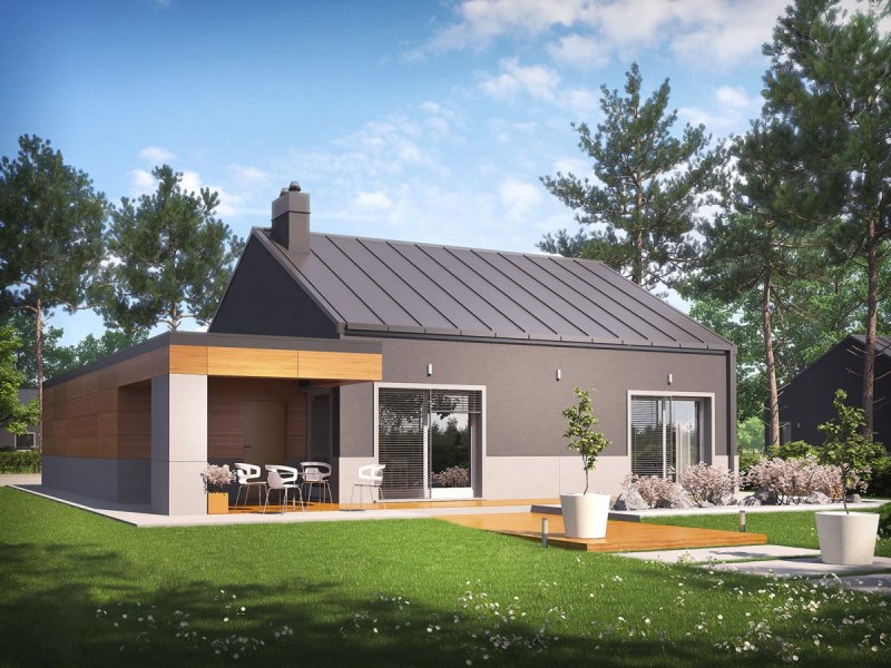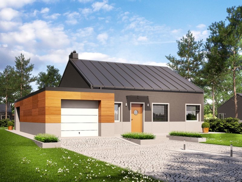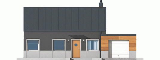 Edwin II G1 to kwintesencja nowoczesnych trendów w architekturze. W trosce o niskie koszty eksploatacji domu, zadbano o jego ergonomiczny i energooszczędny charakter. Zwarta bryła budynku została wzbogacona atrakcyjną formą garażu. Schowana połać dachu harmonijnie współgra z oryginalną kompozycją elewacji. Elegancki chłód szarości tworzy kontrast z otoczeniem, wprowadzając własny porządek. Surowy wygląd przełamuje naturalne drewno, które zastosowano na fragmentach fasady budynku. Elastyczny układ pomieszczeń spełni oczekiwania rodziny, która ceni funkcjonalność i wygodę. Do dyspozycji mieszkańców jest także taras w podcieniu – dodatkowy salon na świeżym powietrzu.
