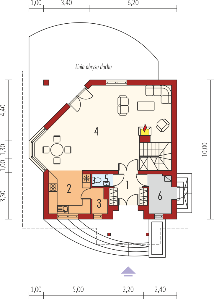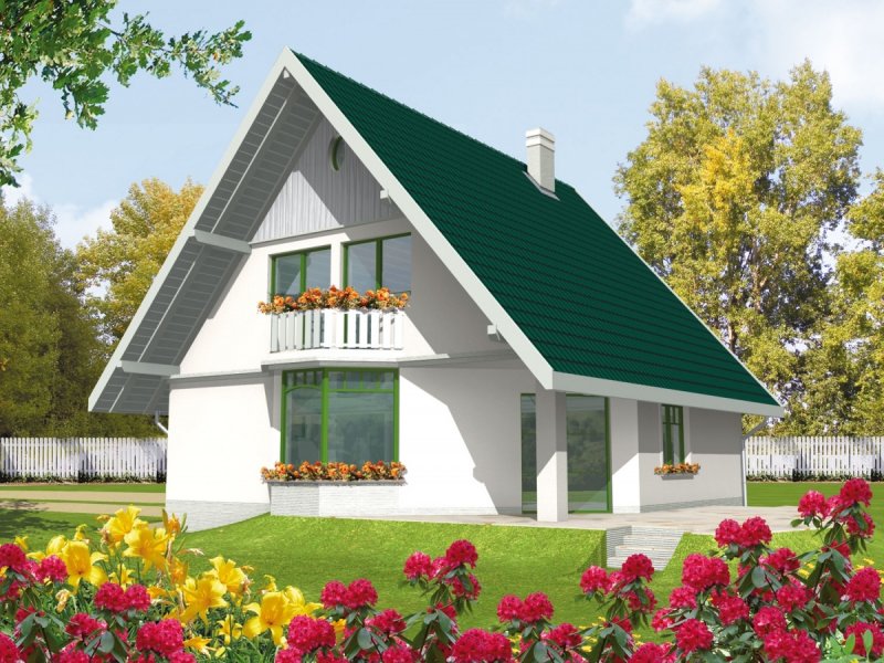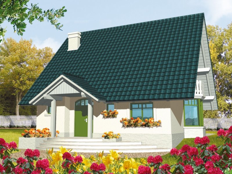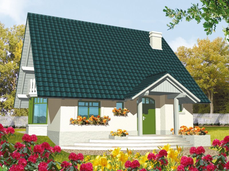Mały dom bez piwnicy o bardzo prostej konstrukcji przeznaczony dla 3-4 osobowej rodziny. Funkcje na parterze rozplanowano w taki sposób aby uzyskać jednoprzestrzenną część dzienną (kuchnia jadalnia pokój dzienny). Do budynku można z łatwością dobudować garaż połączony z domem przez pomieszczenie gospodarcze. Ze względu na niewielkie wymiary dom można usytuować na stosunkowo wąskiej działce. Po niewielkich przeróbkach dom można usytuować kalenicą prostopadle do frontu działki. Wersja z garażem - dostępna w Pracowni.