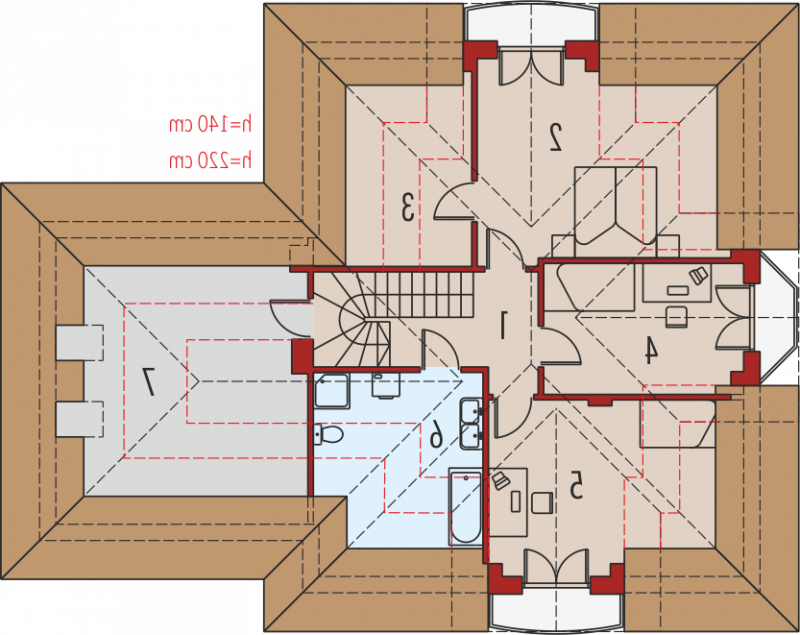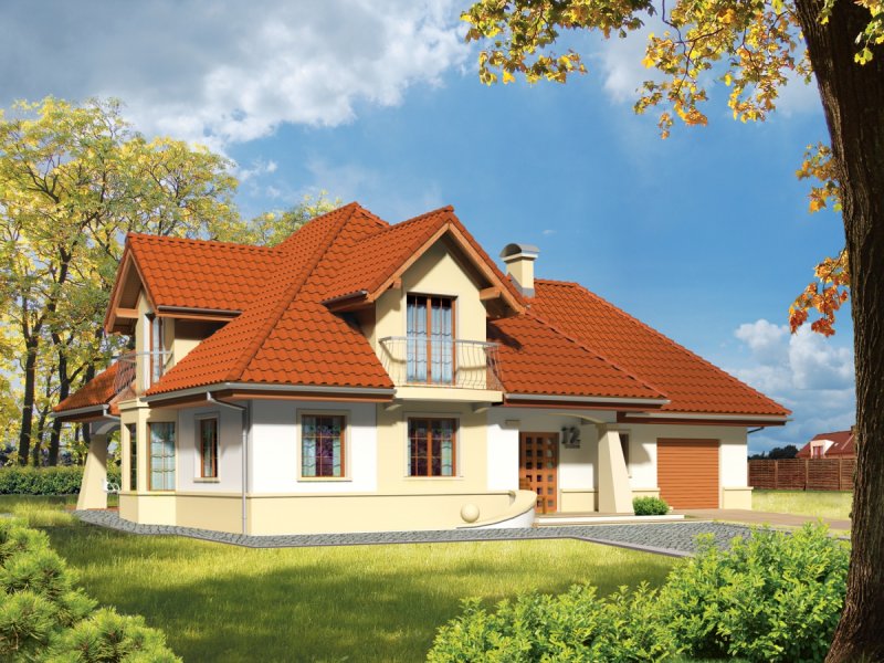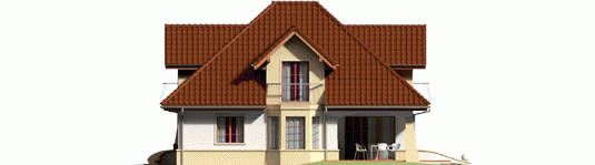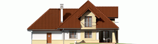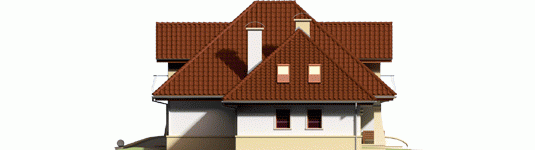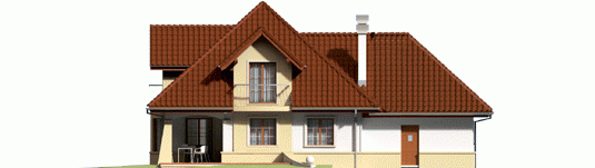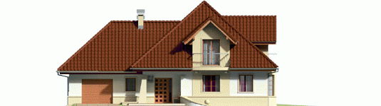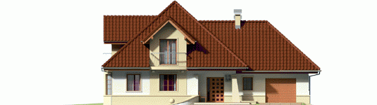 Dom parterowy z poddaszem użytkowym, niepodpiwniczony, z garażem jednostanowiskowym przeznaczony dla 4-5 osobowej rodziny. Strefa dzienna zaprojektowana została na parterze, nocna natomiast na poddaszu. Na strefę dzienną składa się kuchnia ze spiżarnią, salon z jadalnią oraz gabinet, który może zostać wykorzystany jako pokój dla gości. Na parterze znalazły się jeszcze łazienka i pomieszczenie gospodarcze. Poddasze mieści sypialnię z garderobą, dwa pokoje, łazienkę oraz strych, który w razie potrzeby można zaadaptować na dodatkowy pokój. Istnieje wersja projektu z garażem dwustanowiskowym.