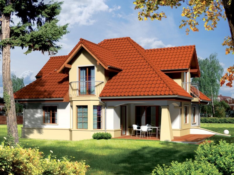 Dom zaprojektowany w technologii murowej ze stropem gęstożebrowym. Schody wewnętrzne drewniane. Dach o konstrukcji drewnianej pokryty dachówką cementową lub ceramiczną. Elewacje i cokół wykończono tynkiem mineralnym. Stolarka okienna drewniana lub PCV. Rolety zewnętrzne naokienne.