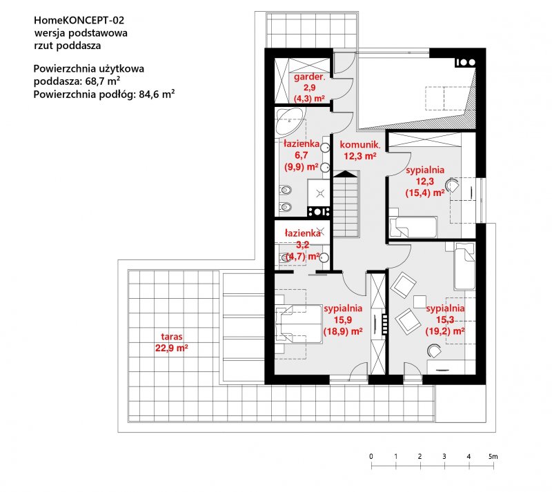 co sprzyja pracy. Poddasze mieści trzy sypialnie, dwie łazienki oraz garderobę.