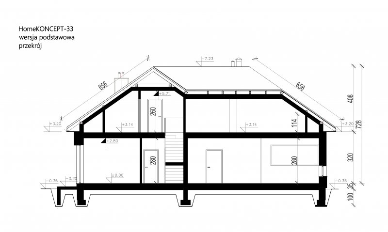 Dom jest zaprojektowany w standardzie energooszczędnym, z odpowiednio grubą izolacją ścian, dachu i podłogi. Zastosowana tu energooszczędna stolarka oraz wentylacja mechaniczna z odzyskiem ciepła z pewnością przyczynią się do obniżenia kosztów utrzymania domu w przyszłości.