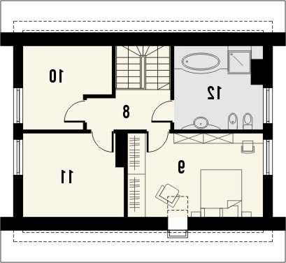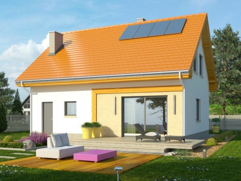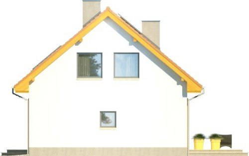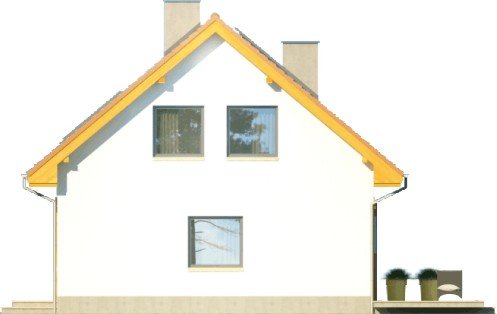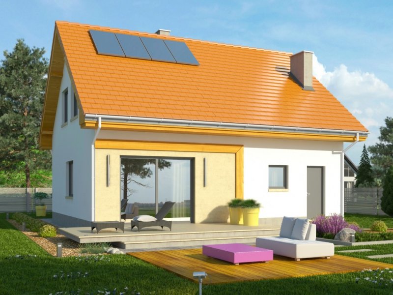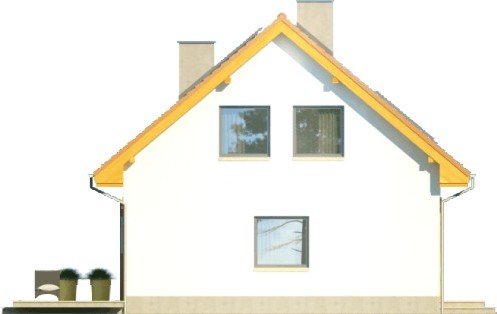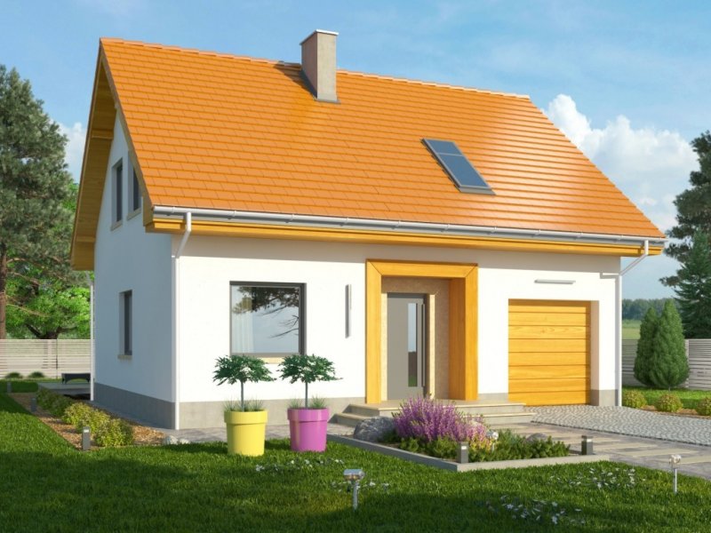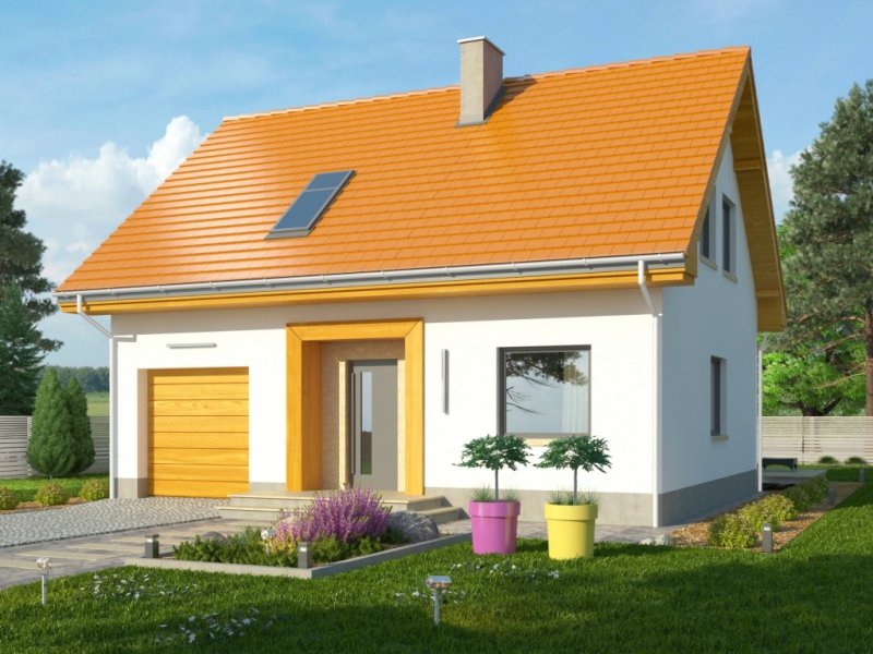 Iskra zwraca uwagę nowoczesną kolorystyką i detalami wykończeń. Dzięki kompaktowej bryle ma tanią konstrukcję, co zapewni niskie koszty budowy i utrzymania. Pod dwuspadowym dachem do dyspozycji jest wygodne, doświetlone klasycznymi oknami w szczytach poddasze, podzielone na trzy pokoje oraz wygodną łazienkę. Parter to salon połączony z kuchnią, wc pod schodami oraz garaż jednostanowiskowy i duże pomieszczenie gospodarcze. Na niecałych 100m2 powierzchni użytkowej domek oferuje wszystkie potrzebne kilkuosobowej rodzinie pomieszczenia, a to wszystko przy naprawdę niewielkim budżecie. Dokumentacja dostępna też w wersji lustrzanej. Dom zaprojektowano ze ścianami warstwowymi z betonu komórkowego z dociepleniem. Strop międzypiętrowy gęstożebrowy typu Teriva. Elewacje tynkowane. Rama wokół wejścia i okna tarasowego drewniana. Pokrycie dachu można zastosować dowolne: dachówkę cementową albo ceramiczną lub też inny materiał wybrany na etapie adaptacji. Dopuszcza się wprowadzenie zmian wszystkich materiałów na inne, wybrane przez inwestora.