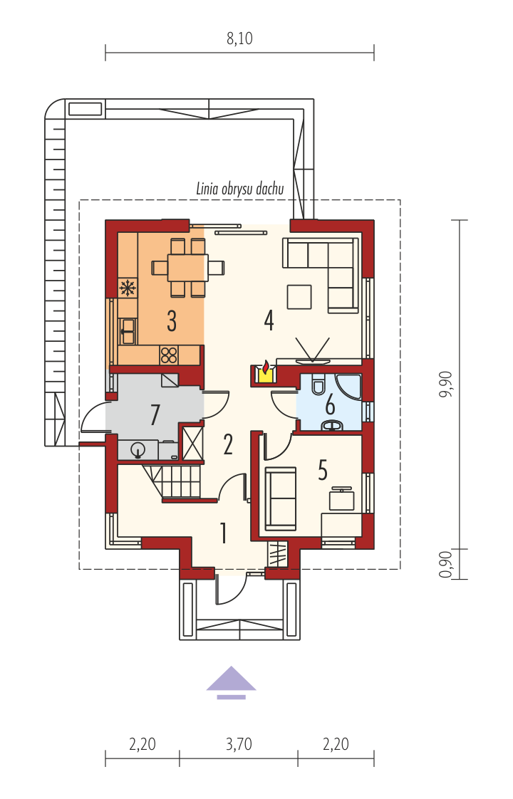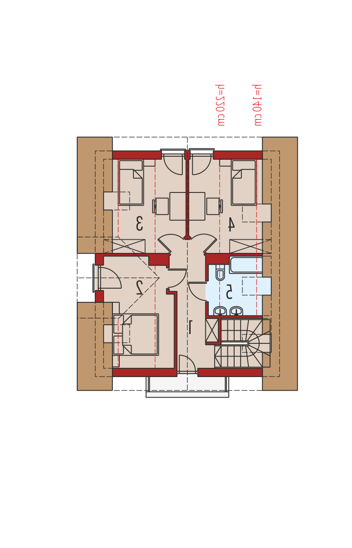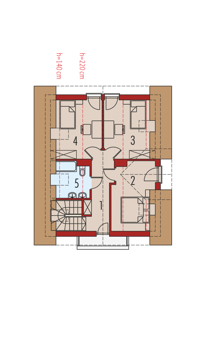Dom parterowy, z poddaszem użytkowym, niepodpiwniczony. Przeznaczony dla 3-4-osobowej rodziny. Funkcjonalny układ pomieszczeń pozwala na optymalne wykorzystanie przestrzeni. Na parterze znajduje się strefa dzienna z salonem otwartym na kuchnię i jadalnię. Dodatkowo mieści się tu łazienka oraz praktyczne pomieszczenie gospodarcze. Schody dostępne z holu prowadzą na poddasze, gdzie zaplanowano komfortową strefę nocną, którą tworzą trzy sypialnie oraz łazienka. Julek II to propozycja dla miłośników tradycyjnej, klasycznej elegancji. Gustowny kolor tynku (NCS S 0505 Y10R) został wzbogacony morelowo-słonecznymi akcentami (NCS S 0505 Y10R), które podkreślają przytulny charakter domu. Dzięki dużej ilości przeszkleń, do wnętrza swobodnie wpada naturalne światło oraz dobra, zielona energia przydomowego ogrodu. Atrakcyjnym elementem Julka II jest także uroczy, nastrojowy taras. Istnieje możliwość podpiwniczenia domu.