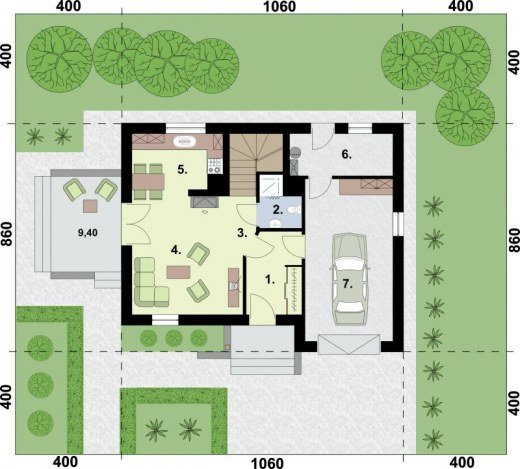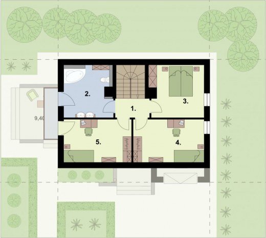 Projekt domu mieszkalnego parterowego z poddaszem użytkowym.
