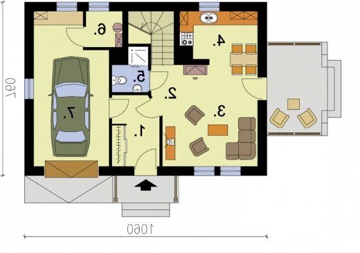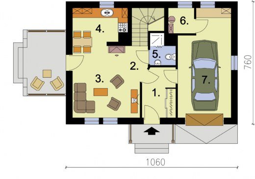 "Katania" To przytulny rodzinny domek, który mimo niepozornego wyglądu ma bardzo wiele do zaoferowania. Na zewnątrz domek ten prezentuje się naprawdę wspaniale, co jest dopiero zapowiedzią tego co oferuje jego wnętrze. Na parterze tego uroczego budynku znajdują się kuchnia z jadalnią oraz salonem, niewielka łazienka i garaż. Połączenie kuchni z salonem gwarantuje Pani/Panu tego domku bezpośredni kontakt w życiu domowników oraz gdy w odwiedziny wpadną goście. Nie martwiąc się o to, że podczas przygotowywania napojów bądź posiłków przemknie choć jedna chwila wspólnej rozmowy. Równie satysfakcjonujące jest wyjście z salonu na taras, ponieważ dzięki niemu nasze życie towarzyskie może toczyć się zarówno w środku jak i na zewnątrz domku. Wyżej wspomniany taras, znajdujący się z boku budynku, zachwyci zarówno miłośników porannych posiłków na świeżym powietrzu, letniego grillowania oraz tych, którzy lubią imprezy wśród grona bliskich znajomych pod gwieździstym niebem. Bardzo korzystne jest bezpośrednie połączenie części mieszkalnej z garażem, gdyż przejście wewnątrz budynku uchroni nas od nie zawsze chcianej pogody oraz zapewni szybkie przejście do kotłowni, która znajduje się na tyłach garażu. Ogromnym plusem całego projektu jest pożądane przez wielu poddasze, które kryje przytulną sypialnie, dwa obszerne pokoje oraz przestronną łazienkę. Projekt składa się z części architektonicznej, konstrukcyjnej, wewnętrznych instalacji wod.-kan, c. o. i elektrycznej. W projekcie załączone są podstawowe zestawienie stali, drewna i stolarki okienno-drzwiowej. Do projektu dołączamy bezpłatną zgodę na wprowadzenie zmian, oświadczenie projektantów o wykonaniu projektu zgodnie z obowiązującymi normami i przepisami oraz kserokopie uprawnień projektantów wraz z aktualnym wpisem do izby. W przypadku zamówienia projektu w technologii lekkiej, drewnianej konstrukcji szkieletowej, powierzchnia użytkowa budynku jest o około 7% większa.