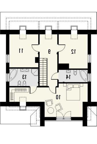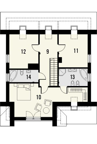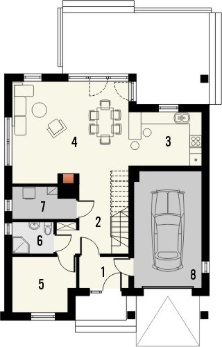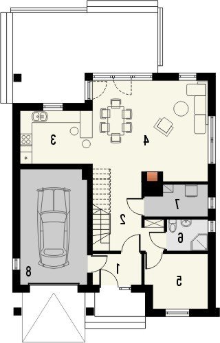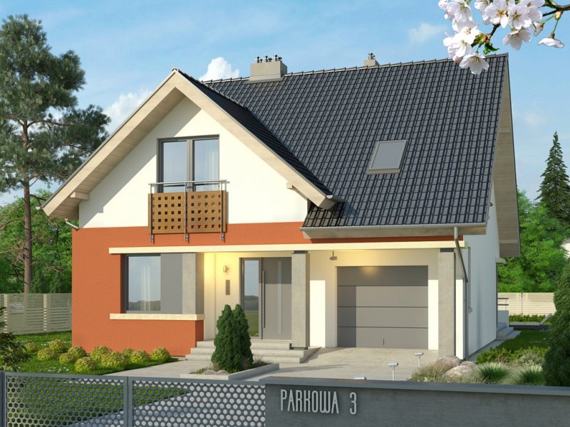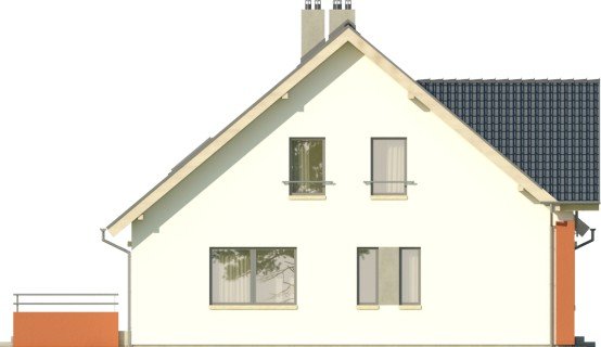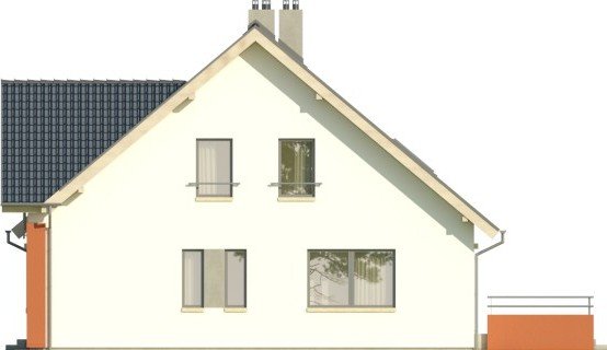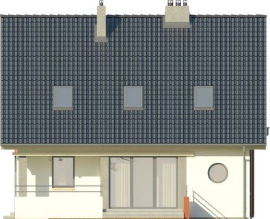 Klasyka 4 to niepodpiwniczonypiętrowy budynek z garażem. Na parterze zaprojektowano przestronnysalon z jadalnią, wychodzący na taras, kuchnię z barem orazdodatkowy pokój z łazienką i pomieszczenie gospodarcze. Napoddaszu znajdują się łazienka oraz trzy pokoje, w tym jedenwyposażony w garderobę oraz osobną łazienkę. Dokumentacjadostępna również w odbiciu lustrzanym. Oryginalny dom z dachemdwuspadowym, dzięki zastosowanej kolorystyce oraz detalomprzywodzący nieco na myśl architekturę okrętów – zwłaszczaod strony ogrodu. Szczególnie atrakcyjna jest elewacja wejściowazwieńczona szczytem, z wejściem do budynku oraz garażemumiejscowionymi w podcieniu. Uwagę przyciąga także ciekawabalustrada.