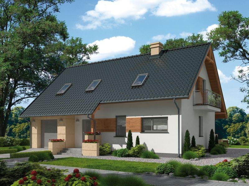 Projekt domu mieszkalnego parterowego z poddaszem użytkowym.
