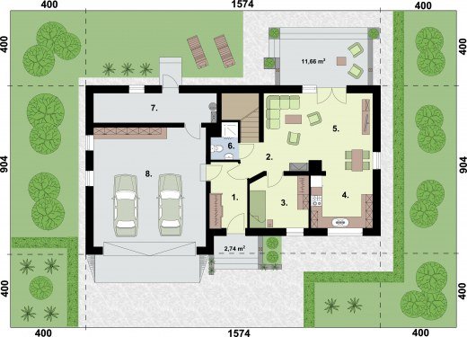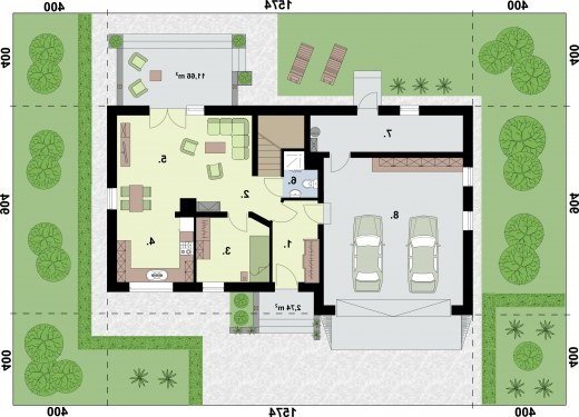 - Min. wymiary działki 23.74x18.82 m