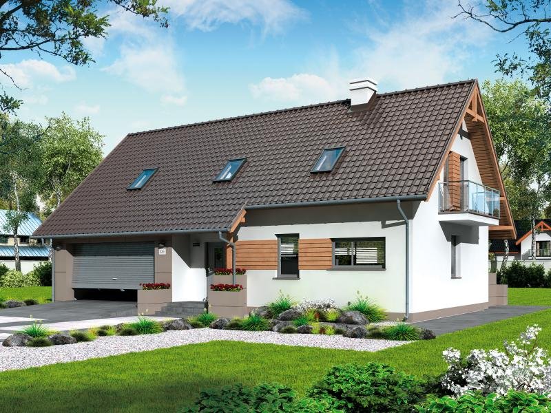 LAMIA 3 - dom mieszkalny wolnostojący z poddaszem użytkowym i garażem dwustanowiskowym.