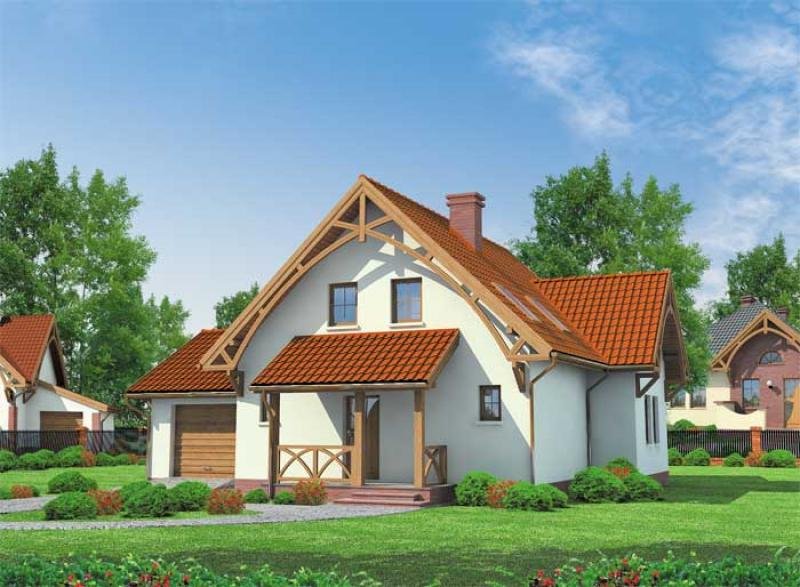 "Las Vegas" Ten niewielki, sympatyczny dom wyróżnia się bardzo zgrabną, harmonijną sylwetką. Przyjazne wrażenie wywołuje wejście, mieszczące się pod wspartym na drewnianych filarach daszkiem. Warto zwrócić uwagę na ciekawa elewację ogrodową, w której dominującym elementem są duże, symetrycznie rozmieszczone okna i przeszklone drzwi wiodące na taras. Lekkie drewniane balustrady, łagodne łuki w szczycie dachu i zgrabny murek z klinkierowanej cegły dodają budynkowi uroku i lekkości. Głównym pomieszczeniem na parterze jest obszerny pokój dzienny, połączony z usytuowaną w jasnym kąciku jadalnią (ta z kolei tworzy całość z funkcjonalna kuchnią). Na tym samym poziomie znajduje się także łazienka, pralnia i kotłownia, z której można wejść do garażu, a także wiatrołap z praktyczną garderobą. Na poddaszu mieści się sypialnia z własną łazienką (jest także druga, większa, do wspólnego użytku domowników), dwa pokoje, poza tym znalazło się tu miejsce na sporą garderobę. Wszystkie pomieszczenia tworzą komfortową i funkcjonalną całość. Projekt składa się z części architektonicznej, konstrukcyjnej, wewnętrznych instalacji wod.-kan, c. o. i elektrycznej. W projekcie załączone są podstawowe zestawienie stali, drewna i stolarki okienno-drzwiowej. Do projektu dołączamy bezpłatną zgodę na wprowadzenie zmian, oświadczenie projektantów o wykonaniu projektu zgodnie z obowiązującymi normami i przepisami oraz kserokopie uprawnień projektantów wraz z aktualnym wpisem do izby. W przypadku zamówienia projektu w technologii lekkiej, drewnianej konstrukcji szkieletowej, powierzchnia użytkowa budynku jest o około 7% większa.