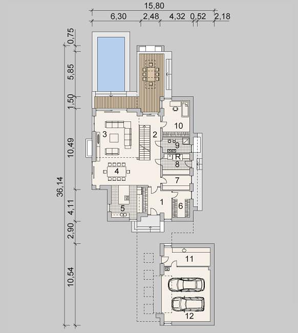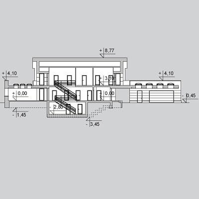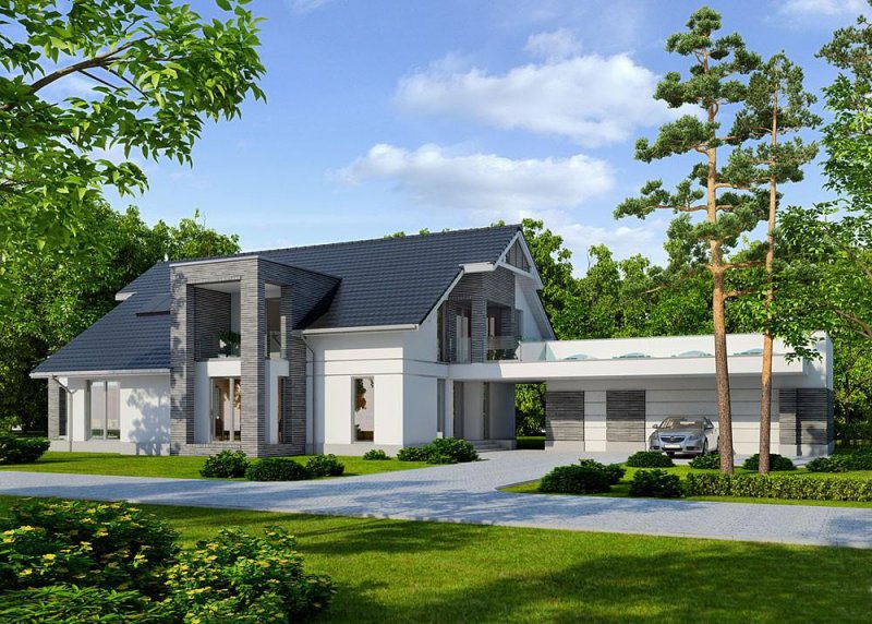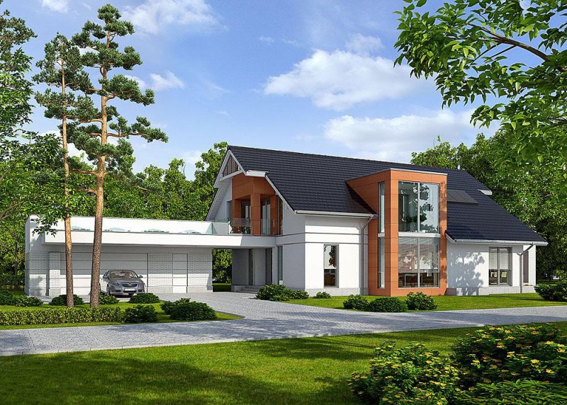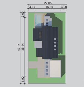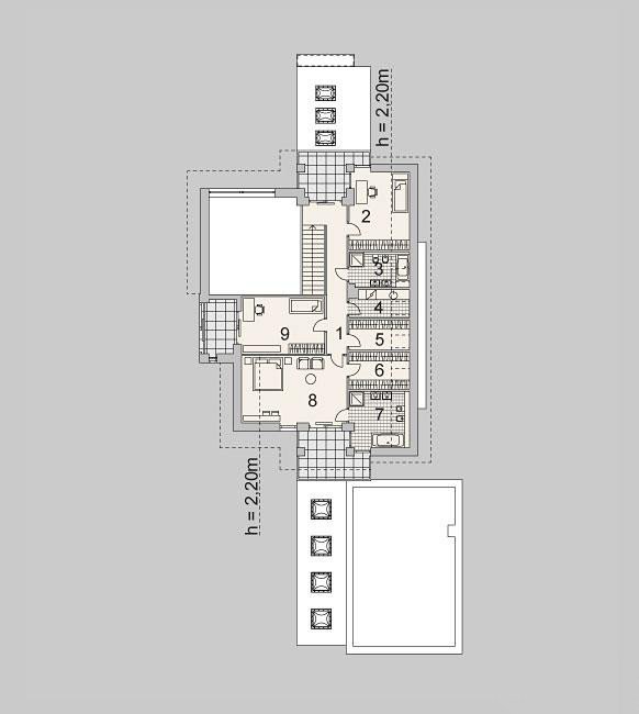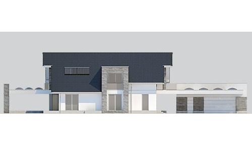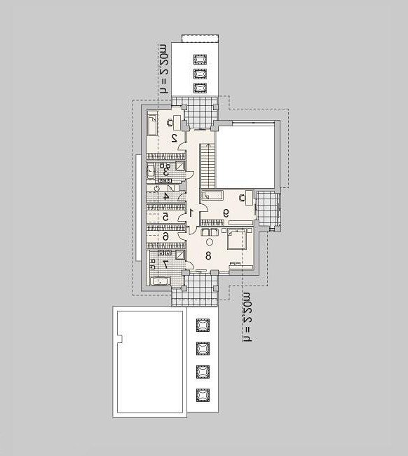 Projekt nowoczesnego domu z piwnicą, garażem oraz basenem.
