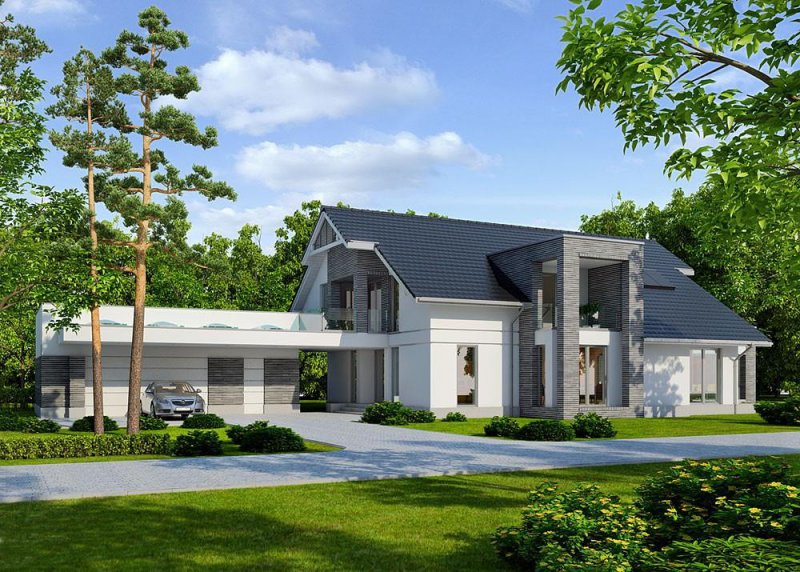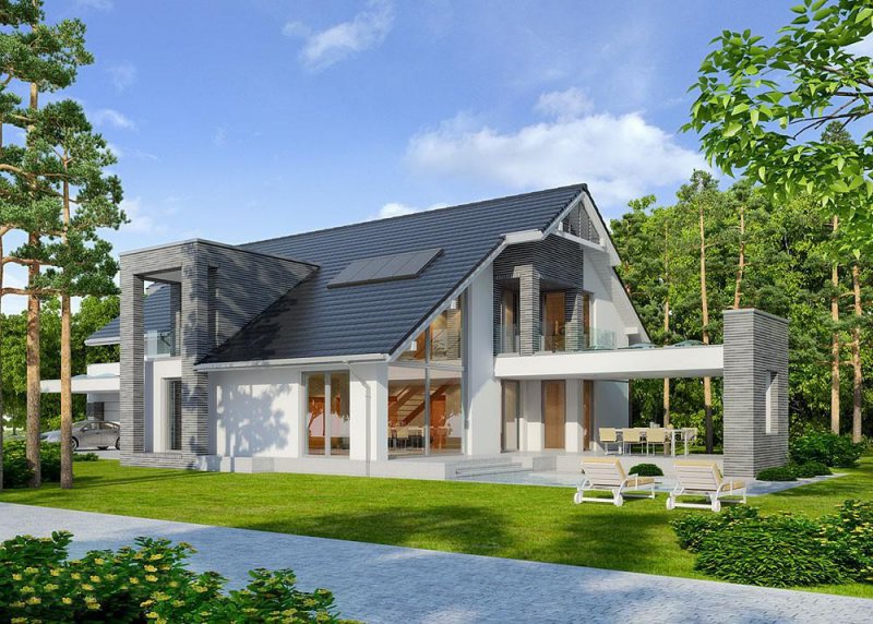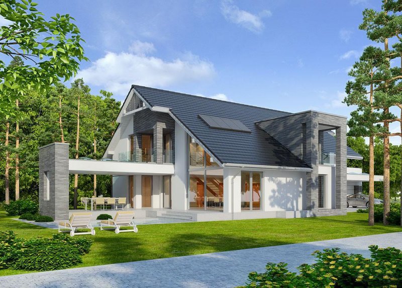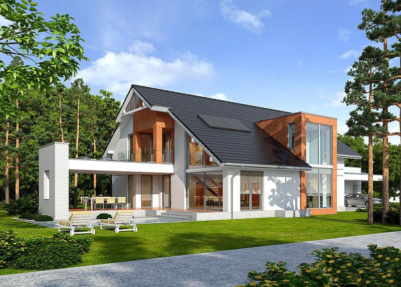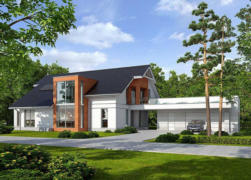 - Pokrycie dachu: dachówką ceramiczną 'Koramic' firmy Wienerberger, Actua 10