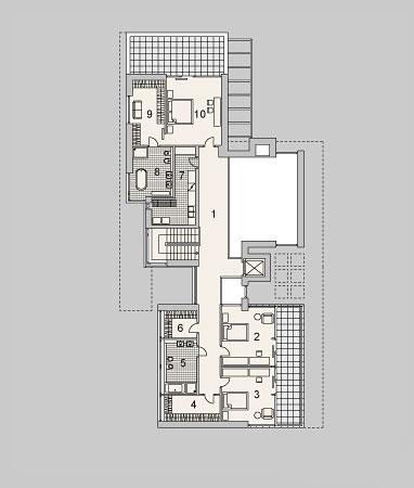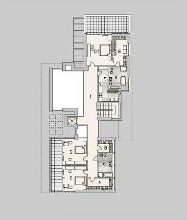 Nowoczesny i elegancki projket LK&1117 zachwyca swoją niebanalną formą. Idealny dom dla osób lubiących przestronne i funkcjonalne wnętrza w bryle o ciekawej konstrukcji. Atutem domu jest oddzielenie strefy nocnej z trzema sypialniami, dwoma łazienkami i garderobami od strefy dziennej z salonem, jadalnią, kuchnią, gabinetem i sąuną.