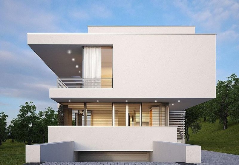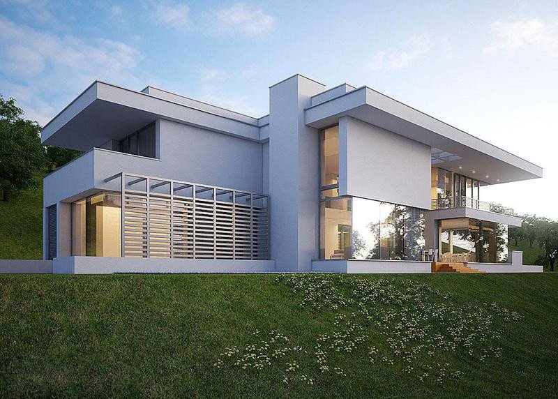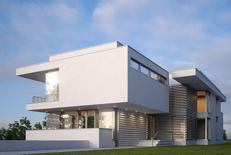 - Elewacje: wykończone tynkiem silikonowym, kamieniem naturalnym ciętym, stalą nierdzewną, blachą emaliowaną