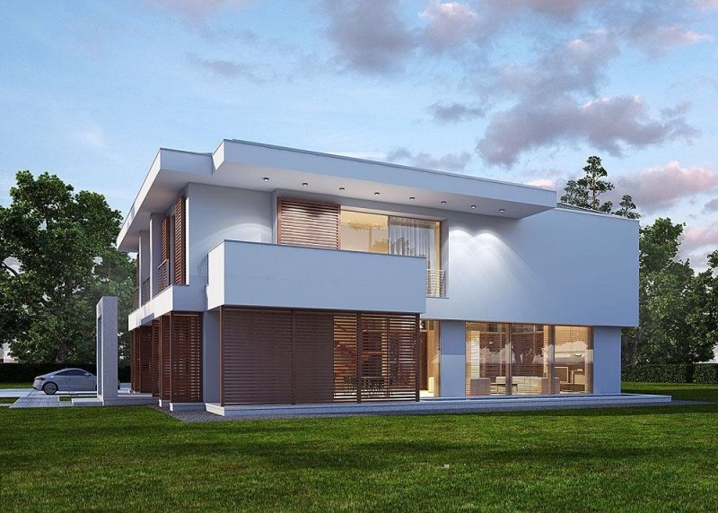 Projekt LK&1121 to nowoczesna i elegancka w swej strukturze bryła. Wysokie przeszklenia pozwalają na wyjątkowe oświetlenie przestronnych pomieszczeń. Elementem niestandardowym jest sposób wykończenia budynku, który nadaje mu charakteru, a z drugiej strony ciepła.