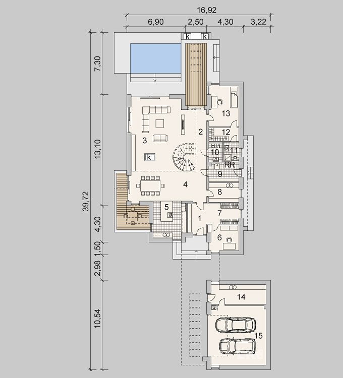 - Powierzchnia dachu 324.90 m²