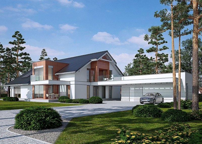 - Pokrycie dachu: dachówką ceramiczną Koramic firmy Wienerberger, Actua 10