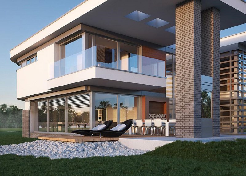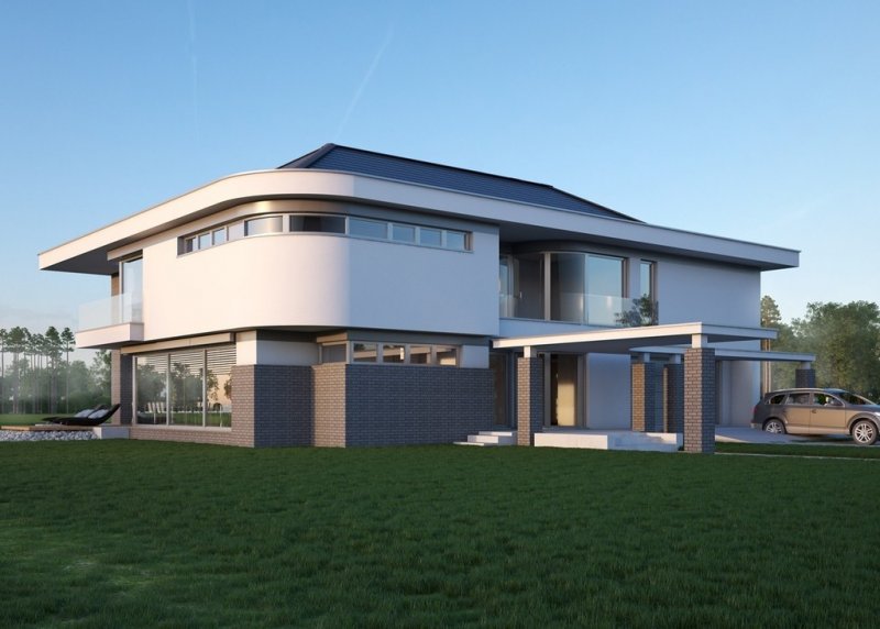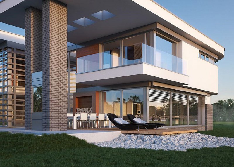- Elewacje: wykończone tynkiem silikonowym, cegłą klinkierową, Cumulus firmy Winerberger, płytami fasadowymi HLP