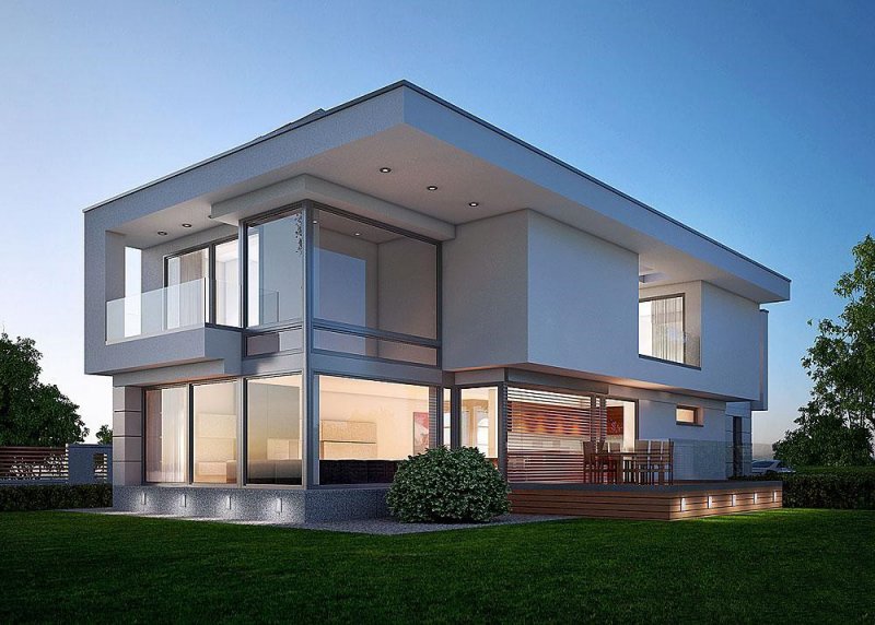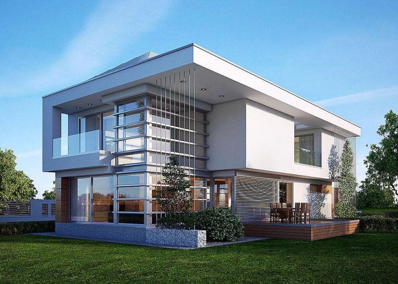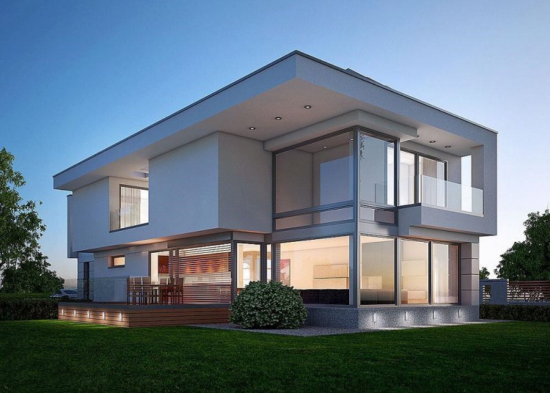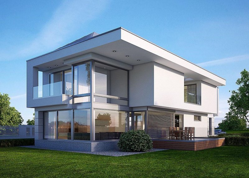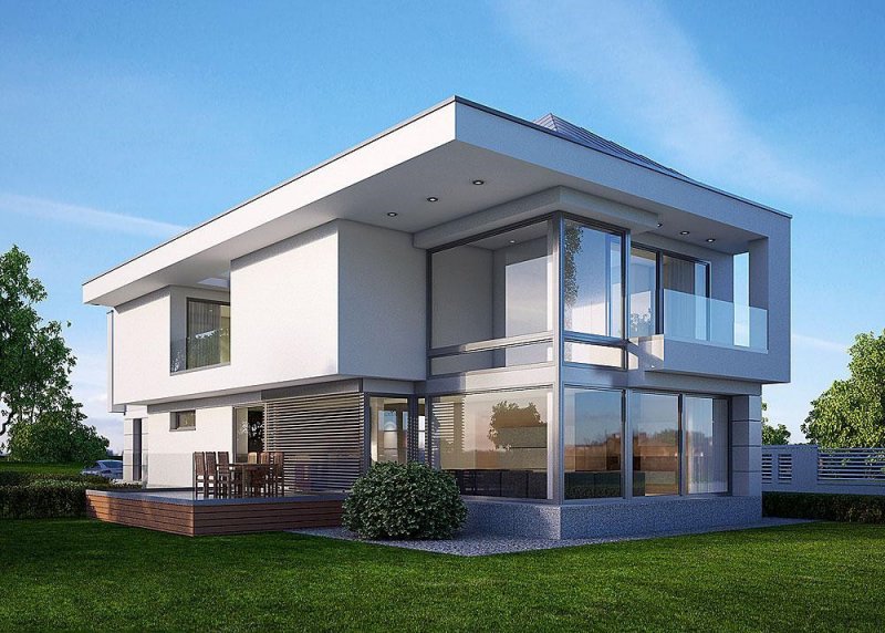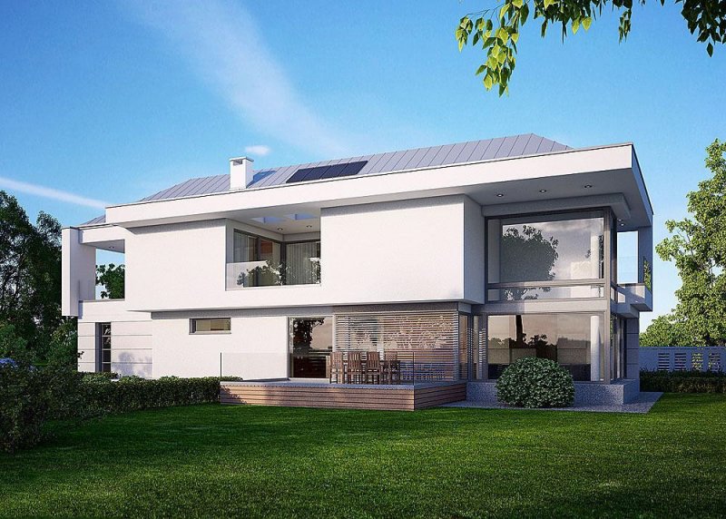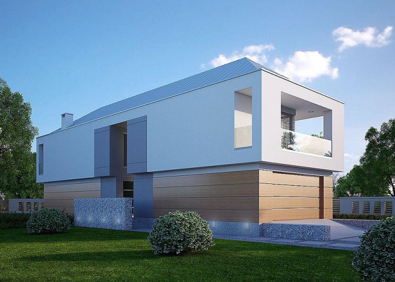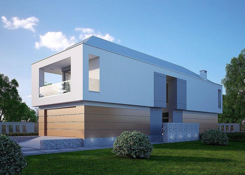 - Elewacje: wykończone tynkiem silikonowym, płytami elewacyjnymi