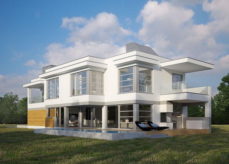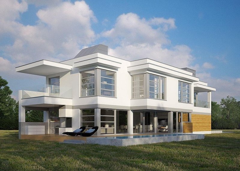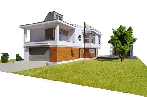 - Elewacje: wykończone tynkiem silikonowym, płytą elewacyjną HPL, granitem