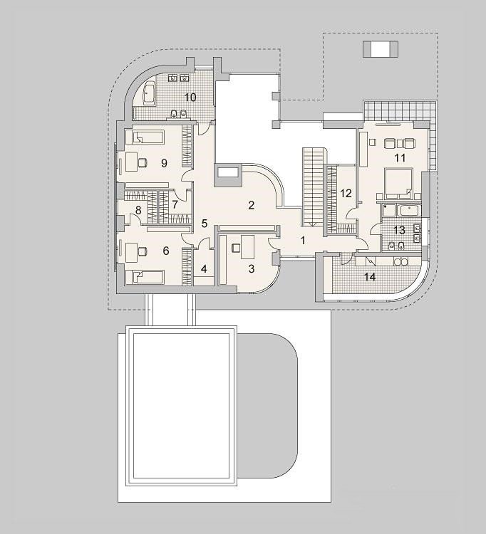 Projekt nowoczesnego domu z basenem, o powierzchni użytkowej, aż 305.41 m².