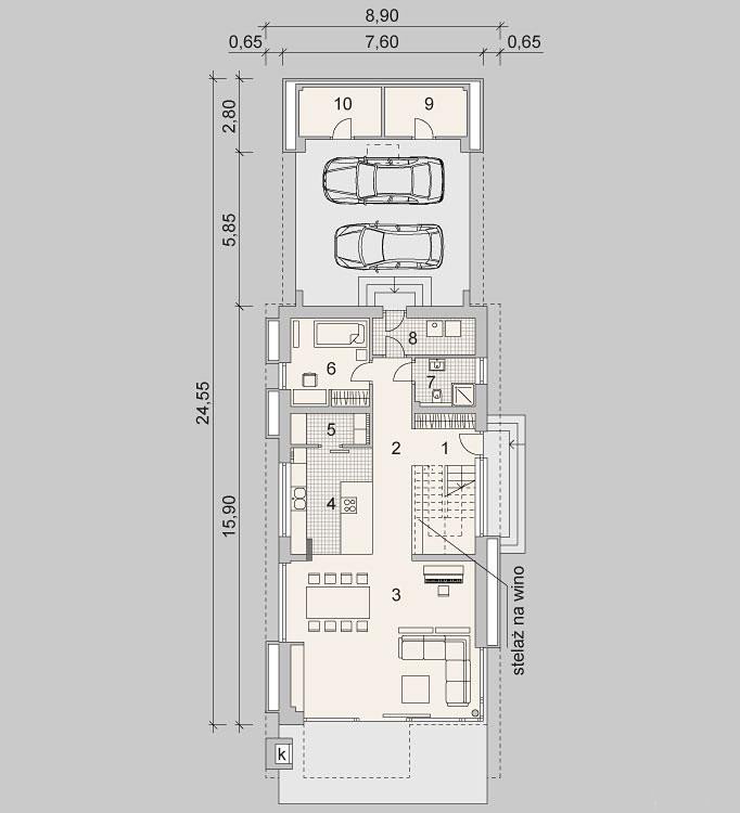 - Elewacje: wykończone tynkiem silikonowym, deska elewacyjna CEDRAL