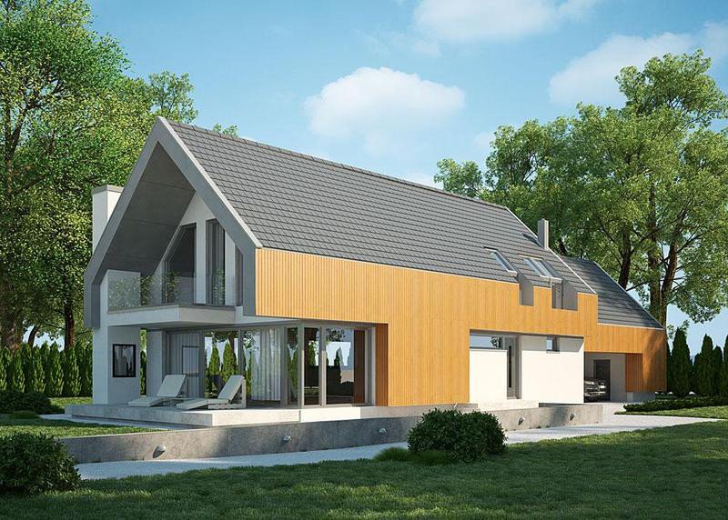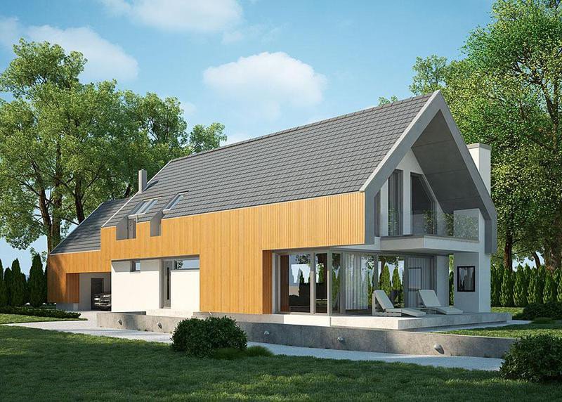 Nowoczesny,jednorodzinny budynek mieszkalny, parterowy z użytkowym poddaszem.