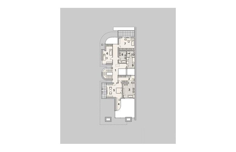 - Elewacje: tynk silikonowy; cokół obłożony kamieniem naturalnym ciętym, cegła klinkierowa