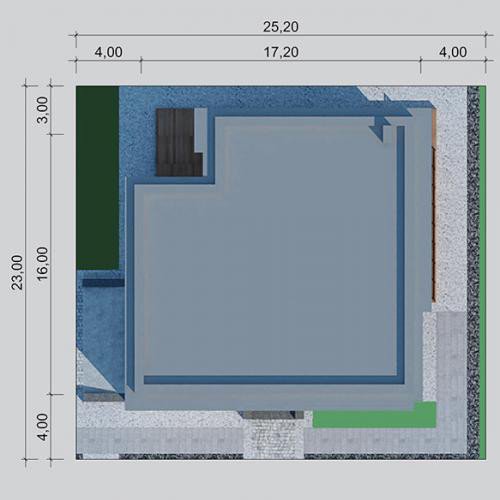 - Ściany fundamentowe: pustaki betonowe zalewowe o gr. 30 i 25 cm, styropian ekstrudowany o gr.20 cm firmy Termo Organika