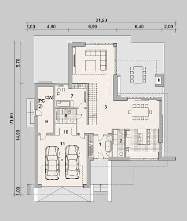 - Min. wymiary działki 27.00x28.60 m