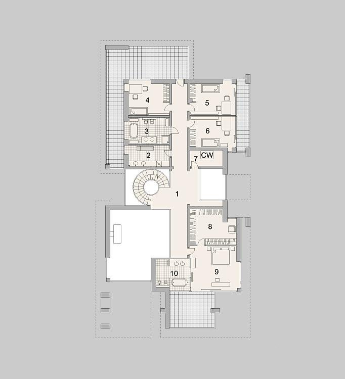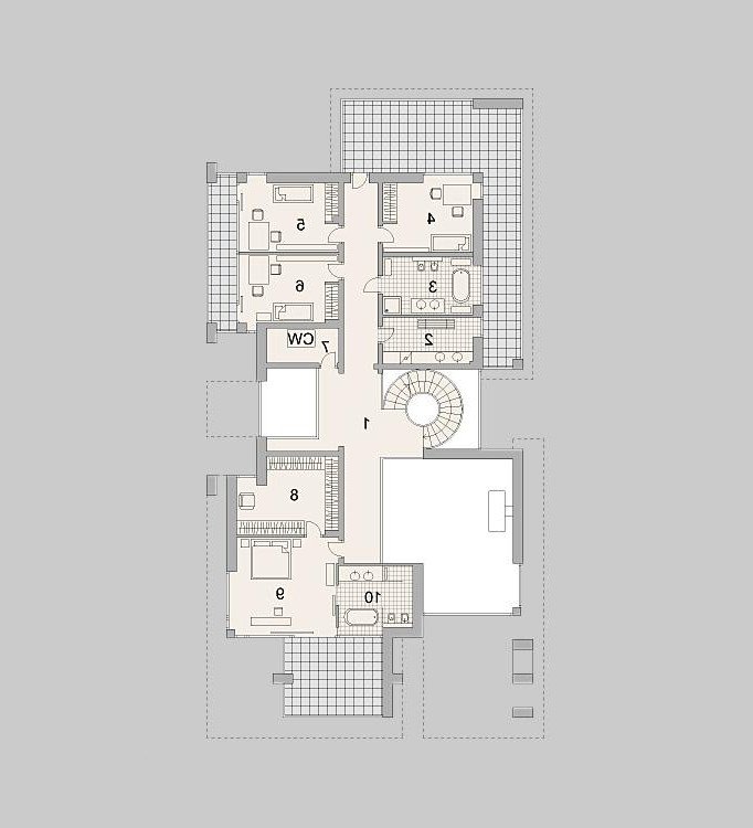 Konstrukcja dachu: stropodach żelbetowy, nadwieszenia na konstrukcji stalowej